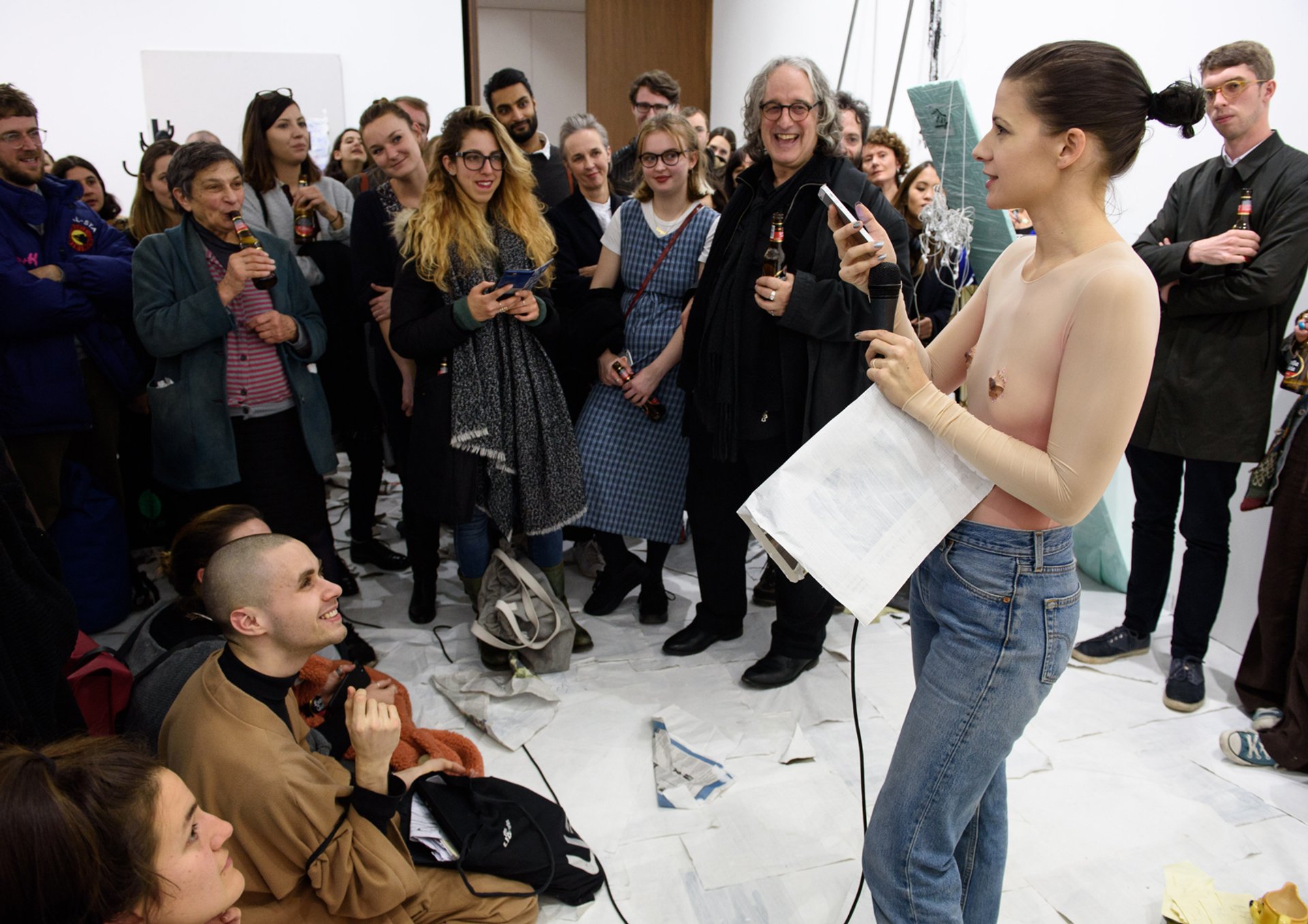 The New Year was emphatically ushered in on Saturday night (6 January) at Sophie Jung’s richly idiosyncratic and packed-out performance, which accompanied her sculptural installation Come Fresh Hell or Fresh High Water (until 13 January) at Blain Southern in London. Wearing a “topless” body suit, complete with prominent nipples that simultaneously shielded and caricatured her body, Jung delivered a free-wheeling and often very funny narrative monologue, rich in wide-ranging reference and word play and triggered by the ideas and back stories imbedded in her surrounding sculptures.