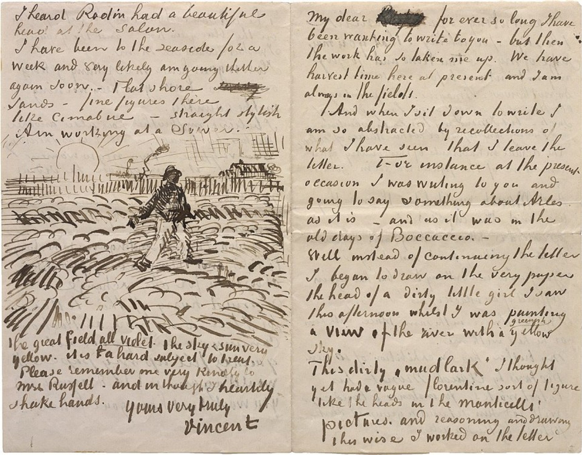 Letter in English from Vincent van Gogh to John Peter Russell, about 17 June 1888, Arles (letter 627) Solomon R. Guggenheim Museum, New York, Thannhauser Collection, Gift, Justin K. Thannhauser, 1978