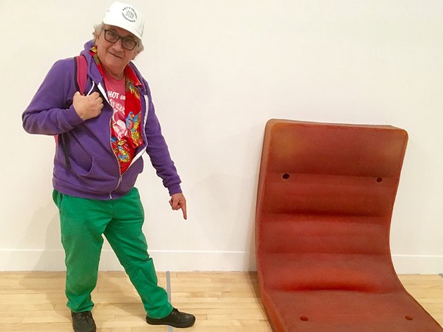 There was more artistic noise emanating from the front gallery where, among the elaborate 18th-century mouldings, Gilbert & George were conjuring up spirits of a different kind with their 1970s photographic Drinking Pieces, which depict the couple in various states of inebriation. These were joined by a trio of Video Sculptures in which a youthful G&G smoke, drink and stroll to the sounds of Grieg and Elgar as well as birdsong and thunder. Presiding over their earlier drunken incarnations, today’s decidedly more sober G&G revealed that the two rather battered green chairs positioned by the fireplace (along with an empty bottles of Gordon’s gin) were the very same ones used in the 1972 video Gordon’s Makes Us Drunk, which was playing above the mantelpiece. “They were the only two chairs that we owned at the time,” Gilbert informed me, whilst also stating that they were most emphatically not for sale. “We still want them back at home,” he said.