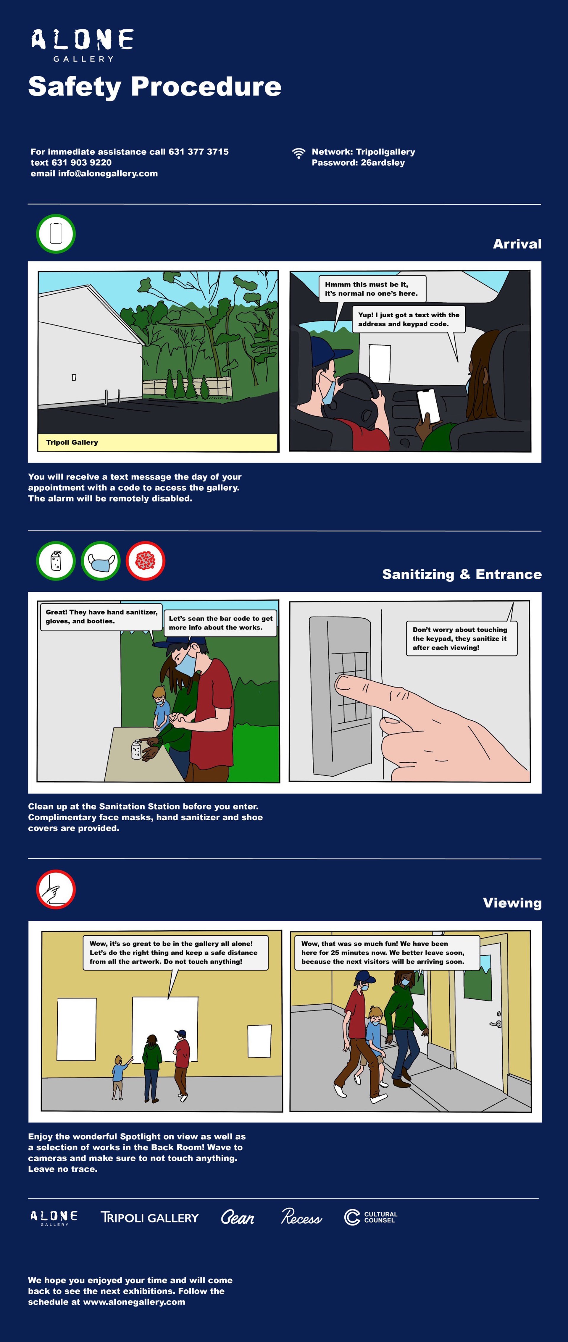 One needs a free reservation to visit the gallery, made through their website, and complimentary masks, gloves, and hand sanitizer are available at a “sanitation station” outside of the entrance. A poster designed by the rapper and emoji portraitist Yung Jake provides a guide to the unique experience (click on the photo below for the full view). “Don’t worry about touching the keypad, they sanitizing after each viewing,” a visitor on the poster helpfully assures us. “Wow, it’s so great to be in the gallery all alone!” another says. “Let’s do the right thing and keep a safe distance from all the artworks. Do not touch anything!”