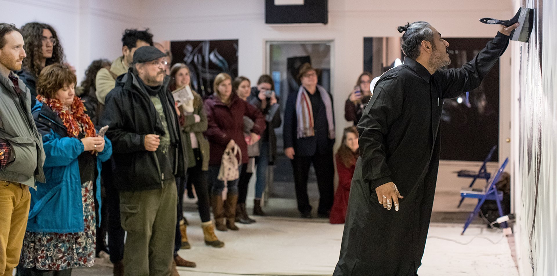I had been in Lewiston for my residency (part of the exhibition Phantom Punch, supported by the Bates College Museum of Art and the King Abdulaziz Center for World Culture) for five days, setting up the studio in the city centre on Lisbon Street. At 8am, the museum’s director, Dan Mills, arrived to accompany me to the college cafeteria and after a light meal I went to the studio to finish the preparations for the performance that evening.
