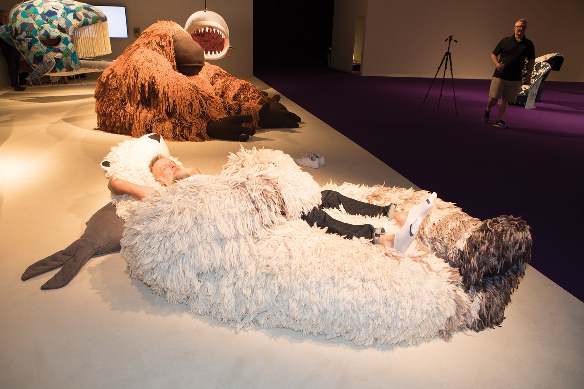 The giant cuddly animals created by the designer Porky Hefer at the shared stand of the Leonardo DiCaprio Foundation, Southern Guild and SFA Advisory in Design Miami/Basel have been turning even the hardest of collectors and dealers into big kids. People’s “faces light up” and they seem to “lose control”, says Lezanne van Heerden, the director of Southern Guild Gallery, which represents Hefer. One suited-and-booted visitor at the VIP opening just “flung himself onto” a giant polar bear. The cute critters, commissioned by the foundation to draw attention to their endangered status, were the subject of a talk this week chaired by Design Miami’s chief creative officer, Rodman Primack. But the question on everyone’s mind was whether Porky Hefer was the designer’s real name. “Hefer is my real surname,” the designer discloses, before admitting his brother gave him the nickname “Porky”: “He called me every fat name in the book.