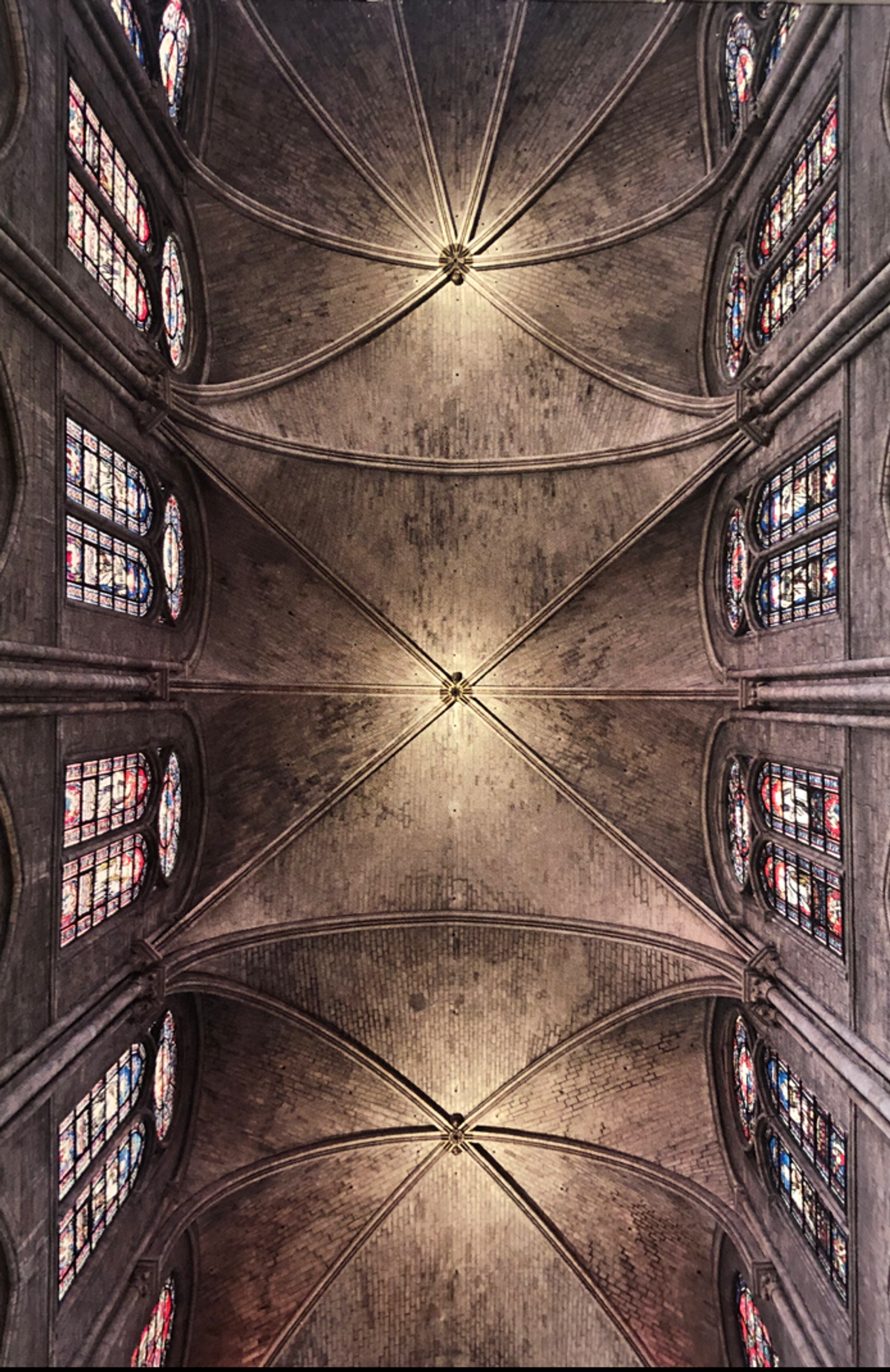 The vaults over the crossing completely collapsed in the fire, while those over the nave, choir and transepts survived, although holed at various points, and because they protected the interior of the cathedral, internal damage is relatively limited. They now need to be freed of the debris left by the collapse of the roof frame and lead tiles; this has already taken place over the two transepts.
