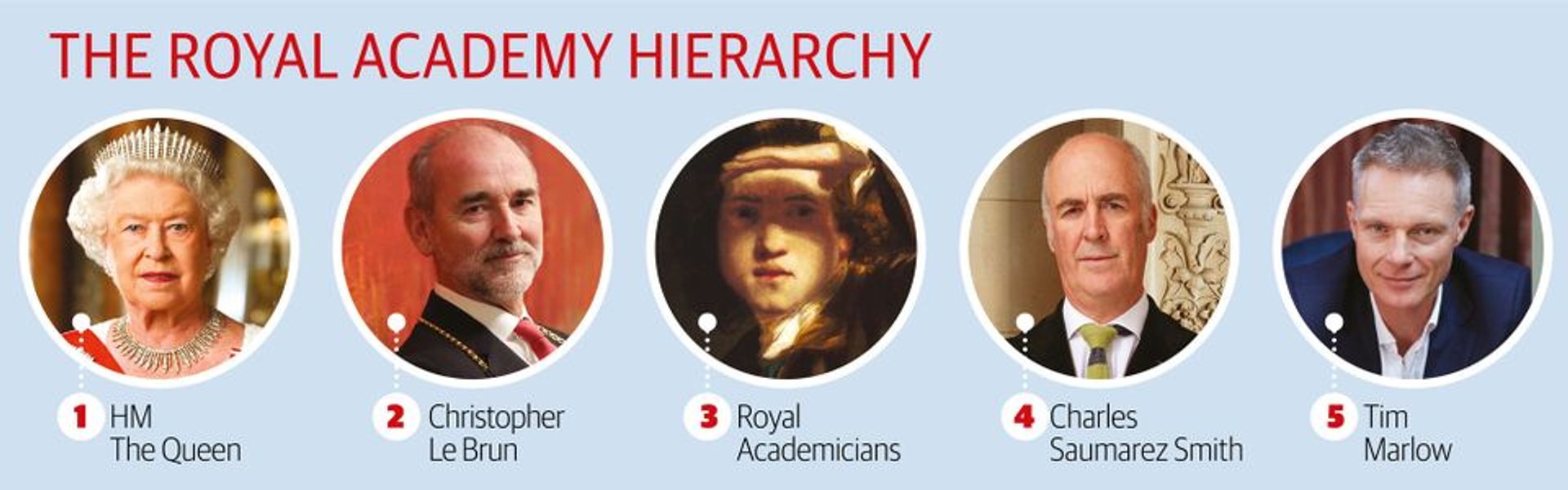 Charles Saumarez Smith’s place in the RA hierarchy may surprise some. The secretary and chief executive is fourth in the food chain: HM The Queen is top, followed by the president (Christopher Le Brun) and the Royal Academicians, then Saumarez Smith. “I’m subordinate to the Royal Academicians, so around 128th on their list,” he says. There are indeed 127 Royal Academicians in total: 80 aged under 75, and 47 over that age.