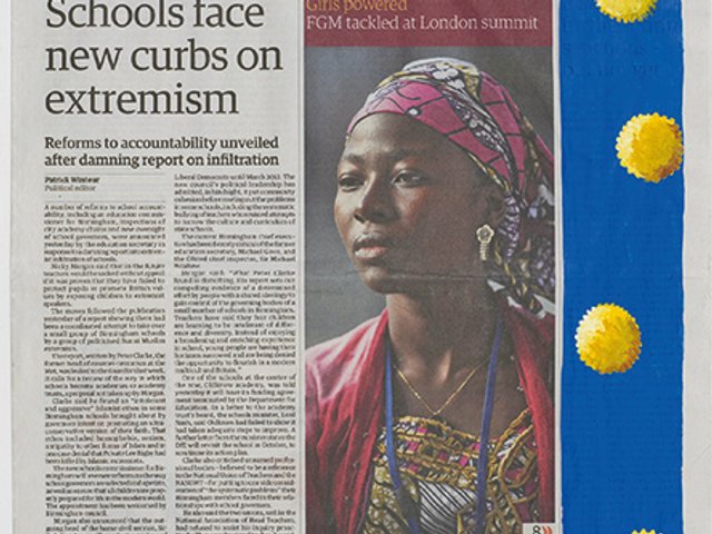 The gallery is showing works from Himid’s Negative Positives: the Guardian Series (2007-16), in which the eponymous UK newspaper acts as a canvas. Prices start at £12,000. Works from the 2017 series known as Men in Drawers begin at £30,000.