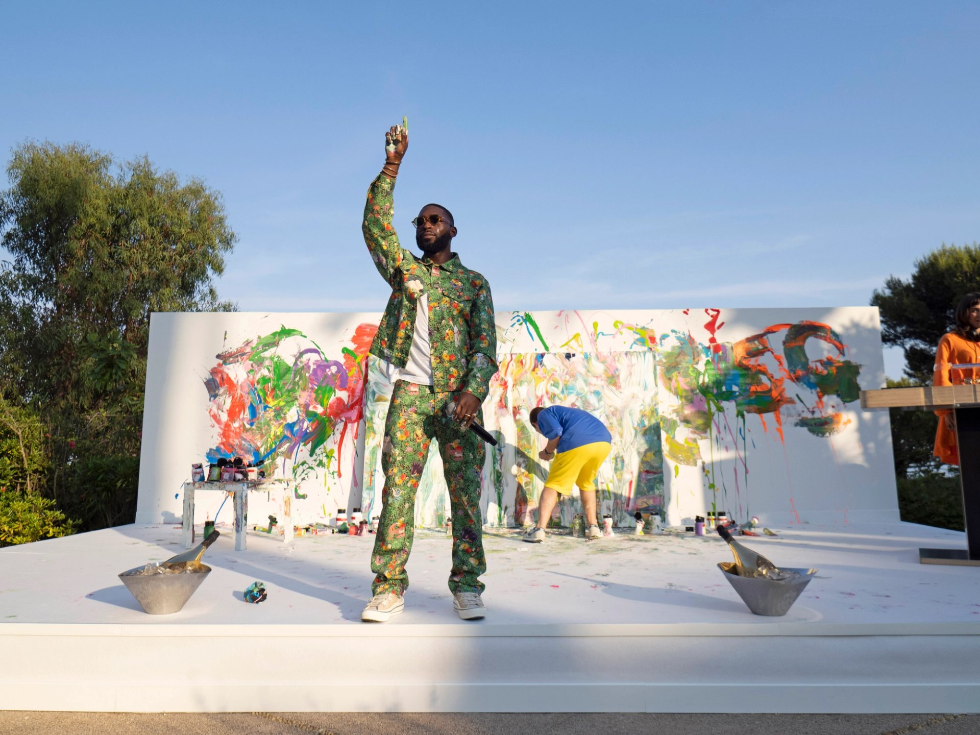 Present the Future, a one-off, live, collaborative performance of live painting by Sassan Behnam-Bakhtiar and a musical and spoken word performance by Tinie Tempah Images courtesy of the artists