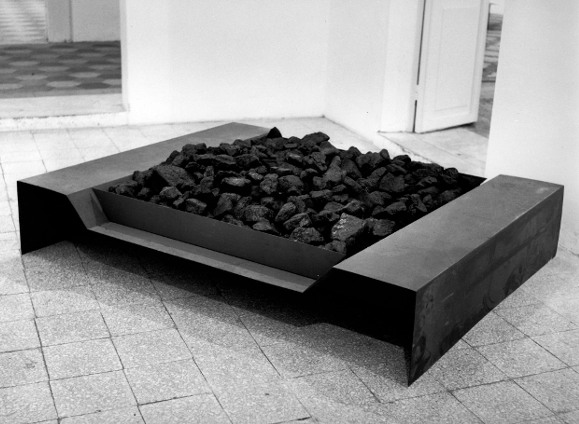 Untitled (The coal bin) (1967) by Jannis Kounellis, created for Germano Celant's defining show Arte Povera—IM Spazio at Galleria La Bertesca