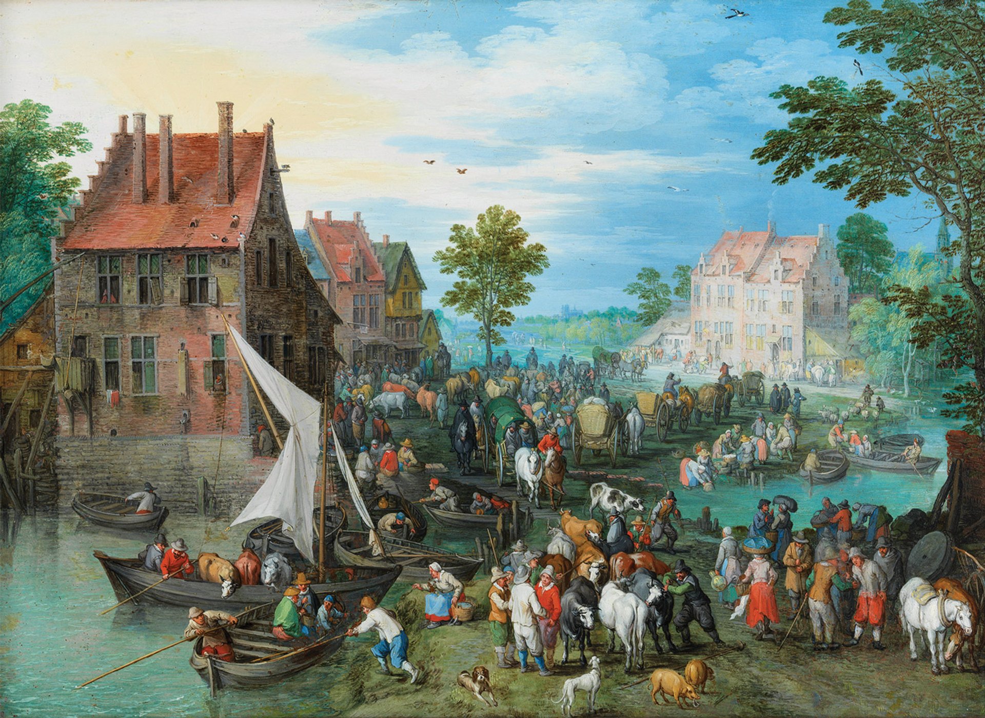 Jan Brueghel the Elder’s Village Landscape by the Water With Cattle Market (1613). Courtesy of Tomić-Hampel Fine Art Auctions