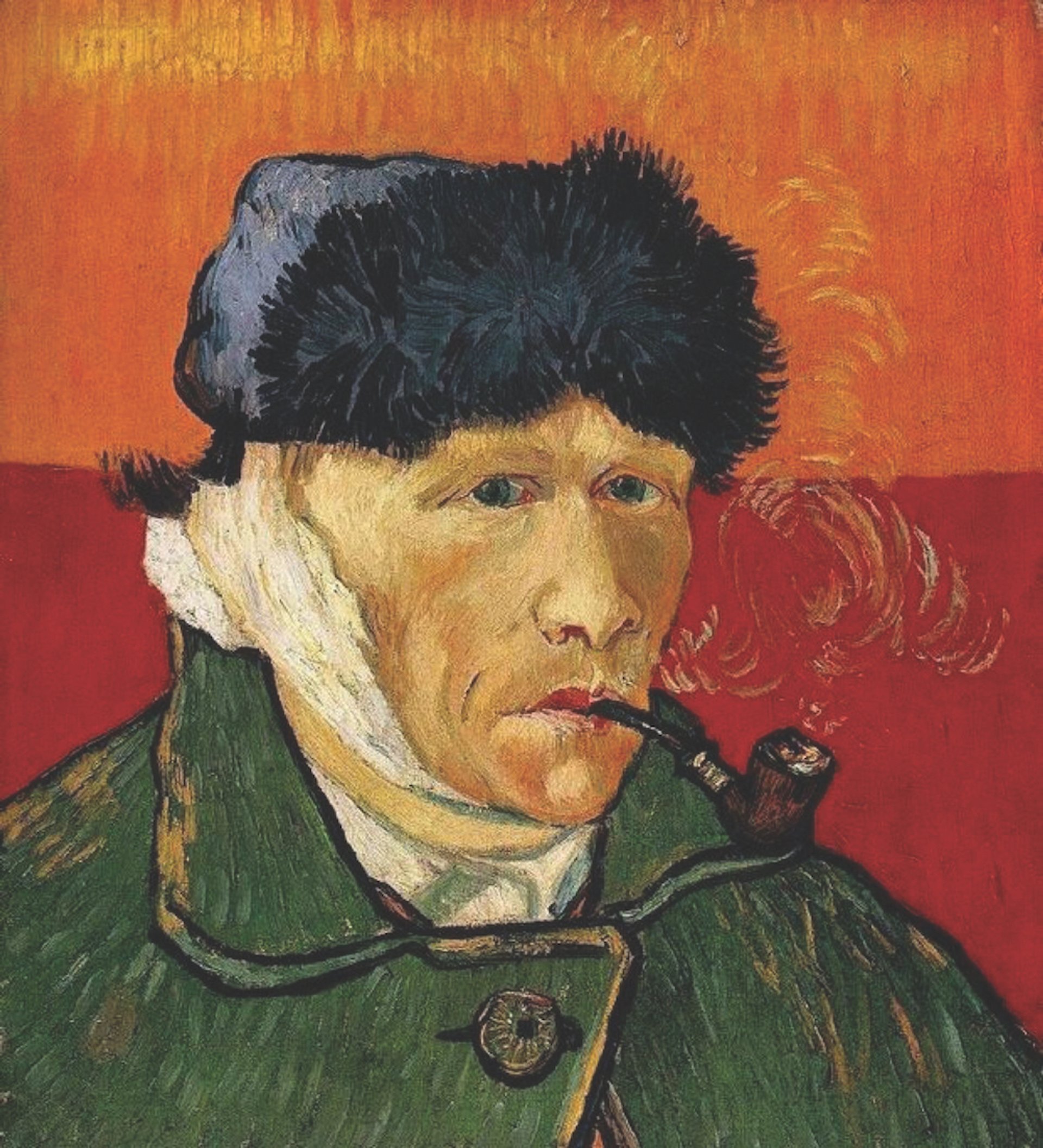 Vincent van Gogh’s Self-portrait with bandaged ear and pipe (1889) Courtesy of Niarchos Collection