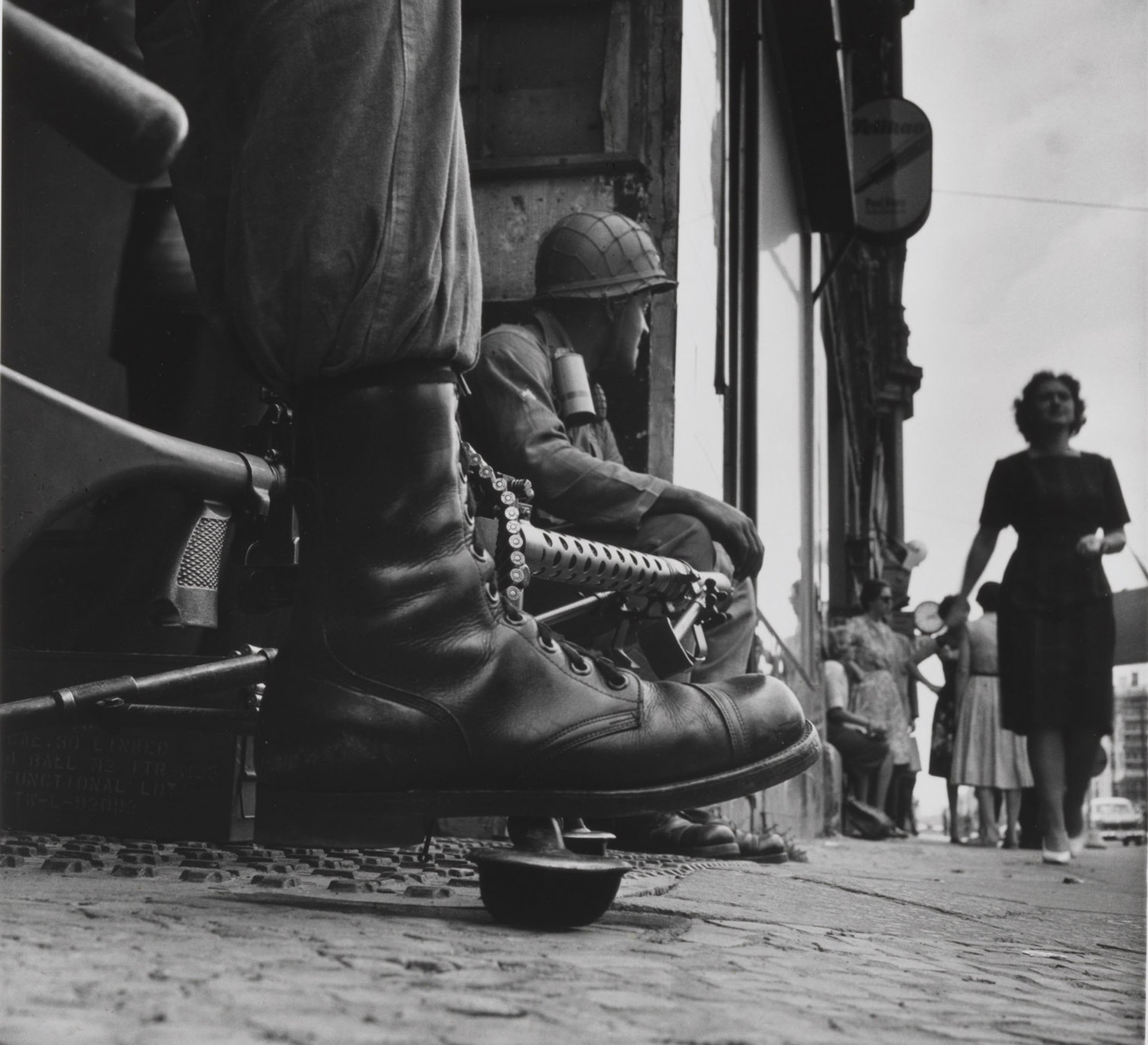 Don McCullin’s 1961 photograph Near Checkpoint Charlie, Berlin, taken at the height of the Cold War © McCullin