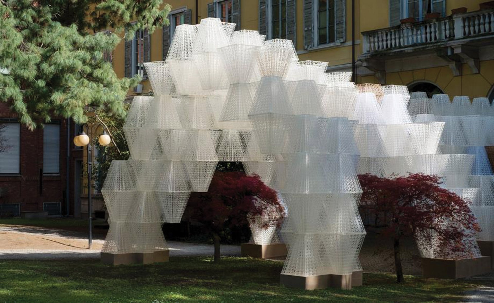 Conifera, an installation made from 3D-printed bioplastic bricks, by COS × Mamou Mani. Shown at Salone del Mobile, Milan © Image courtesy of COS