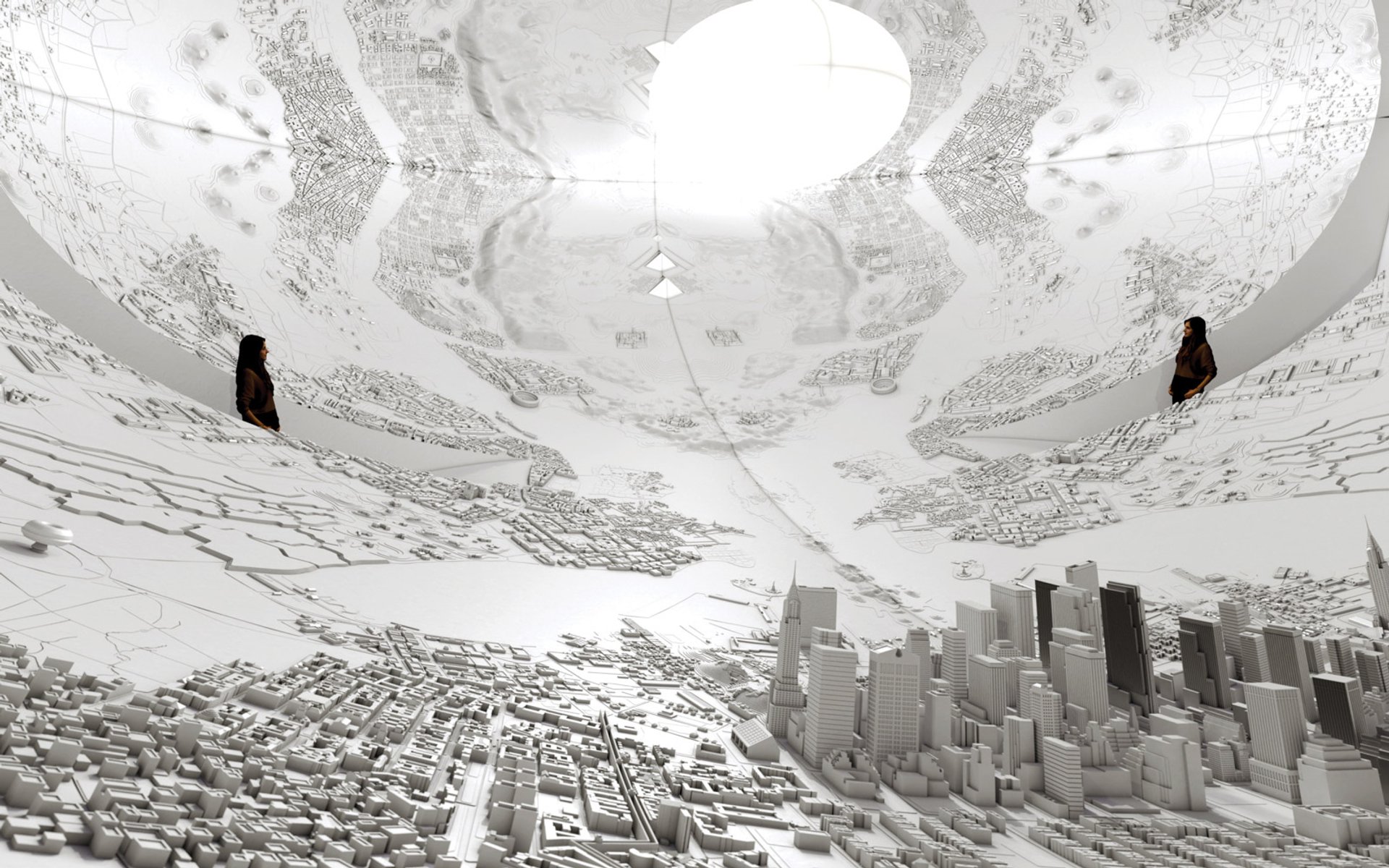 Devlin is keen for people to enter the space on their own and to take their time. “They’ll walk into a white ovoid expanse, so there is an initial, material, phenomenological experience,” she says. “Some will just enjoy being in what is a kind of model city. But I hope people will question what we’ve done and why.”