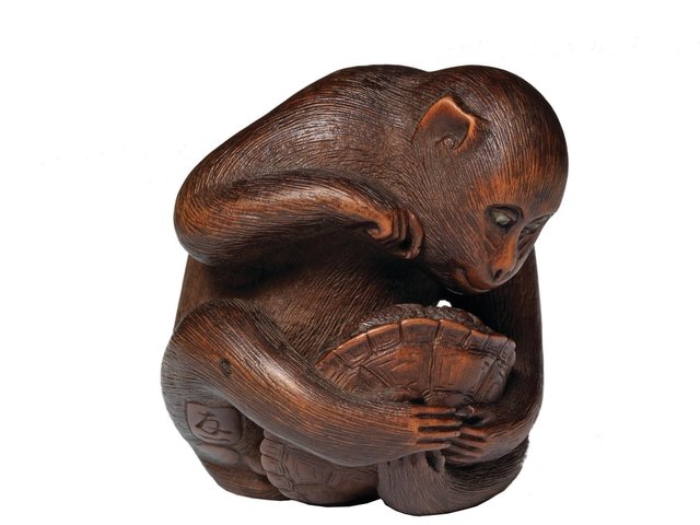 An ancient artisan from Colima in West Mexico carved this tactile piece of polished green stone into the image of a man—or is it a frog? Looking at it straight on, the little sculpture looks like a man sitting on his haunches, but if you turn the object on to its front, the image suddenly becomes that of a frog—the man’s ears become the frog’s eyes and his hairline becomes an amphibian’s downturned mouth. The discreetly drilled holes in the shoulders suggest this carving may have once been worn as a pendant. The piece, made some time between 200BC and AD300, is on sale with New York’s Merrin Gallery for £3,500.