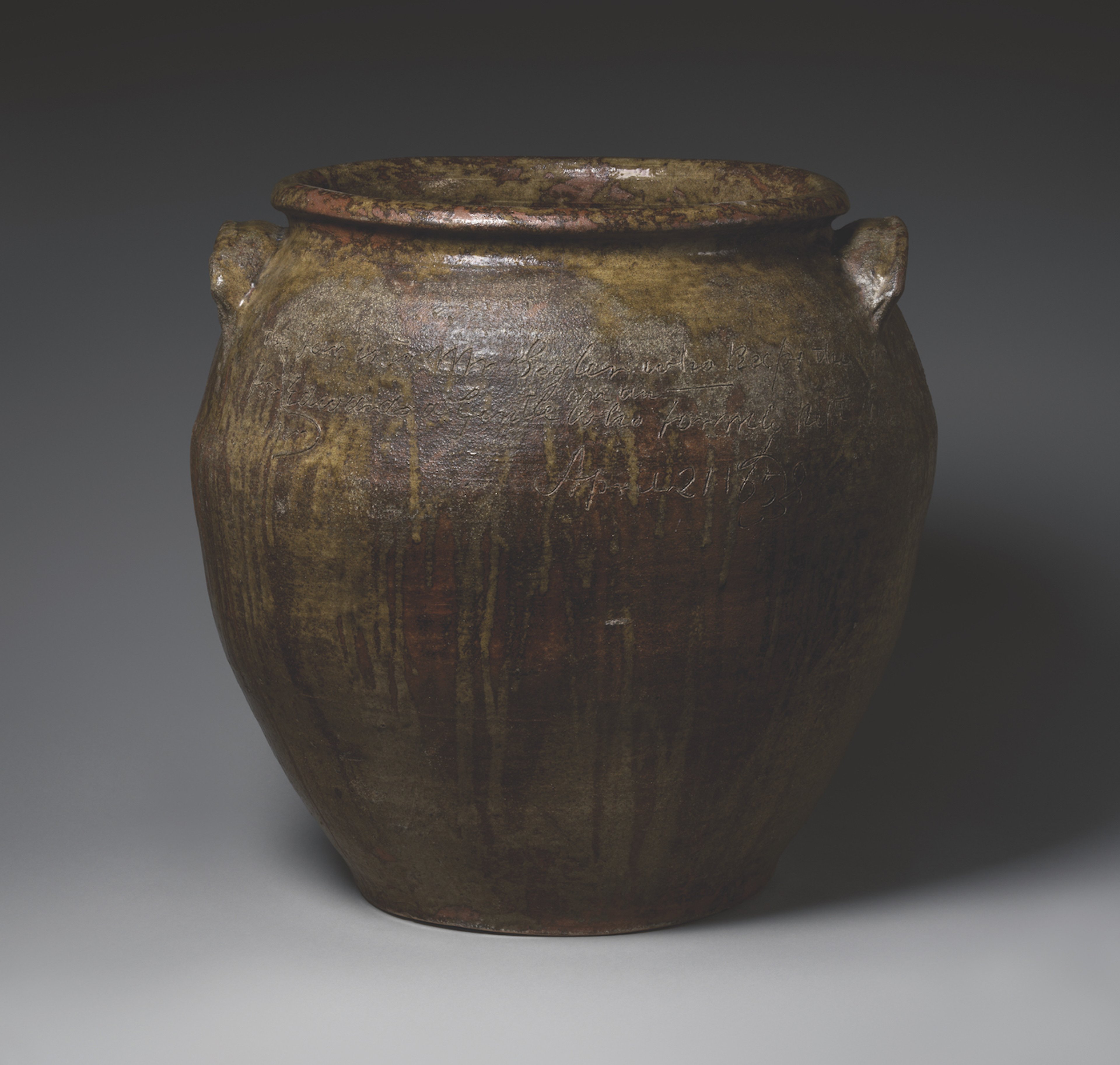 The enslaved African-American potter David Drake produced and inscribed this stoneware jar in 1858, when it was illegal in the US for slaves to read or write. The 22.5in-high glazed vessel bears a four-line poem stating its purpose as a food container as well as the artist’s signature, a “bold act of creativity and declaration of authorship on Drake’s part”, says Adrienne Spinozzi, the Met's assistant research curator of decorative arts in the American Wing. The Met bought the work—one of around 40 “poem vessels” attributed to Drake—for an undisclosed price from the collection of Arthur and Esther Goldberg. The Metropolitan Museum of Art, New York, has acquired an inscribed stoneware vessel by David Drake. Photo: © The Metropolitan Museum of Art, New York