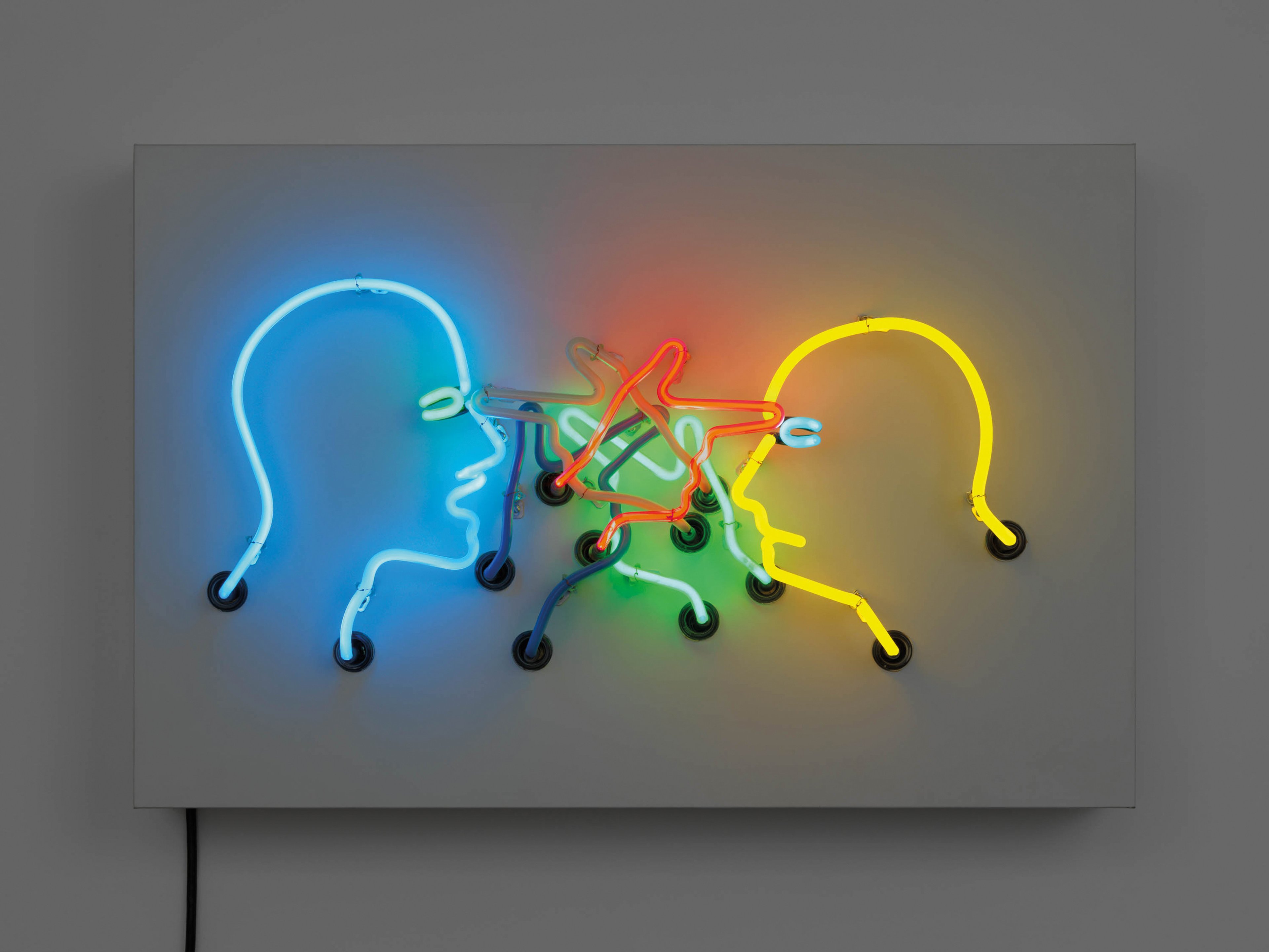 Bruce Nauman's Double Poke in the Eye II (1985), David Zwirner, Frieze Masters: If anything is going to make you cry, it’s a double poke in the eye. The US artist Bruce Nauman is having his moment in the (neon?) sun with a major retrospective that was staged at the Schaulager during this year’s Art Basel; the show will travel to New York’s Museum of Modern Art later this month. The gallery would not reveal the price of the work. (That’s one in the eye for us.) Courtesy of David Zwirner