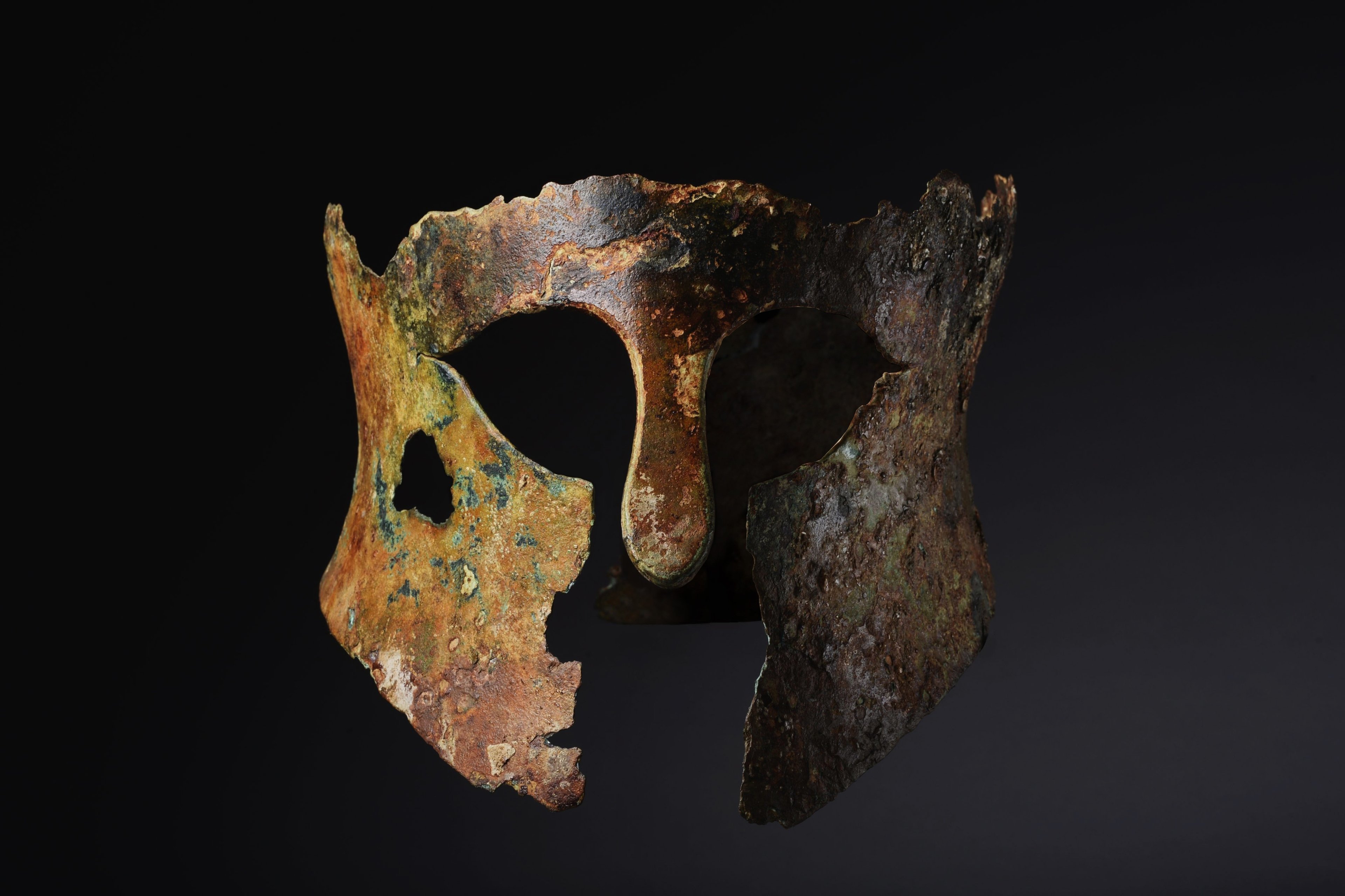 This Corinthian bronze helmet (circa 6th century BC) was sold to a British collector for £56,000 by Art Ancient Courtesy of ArtAncient