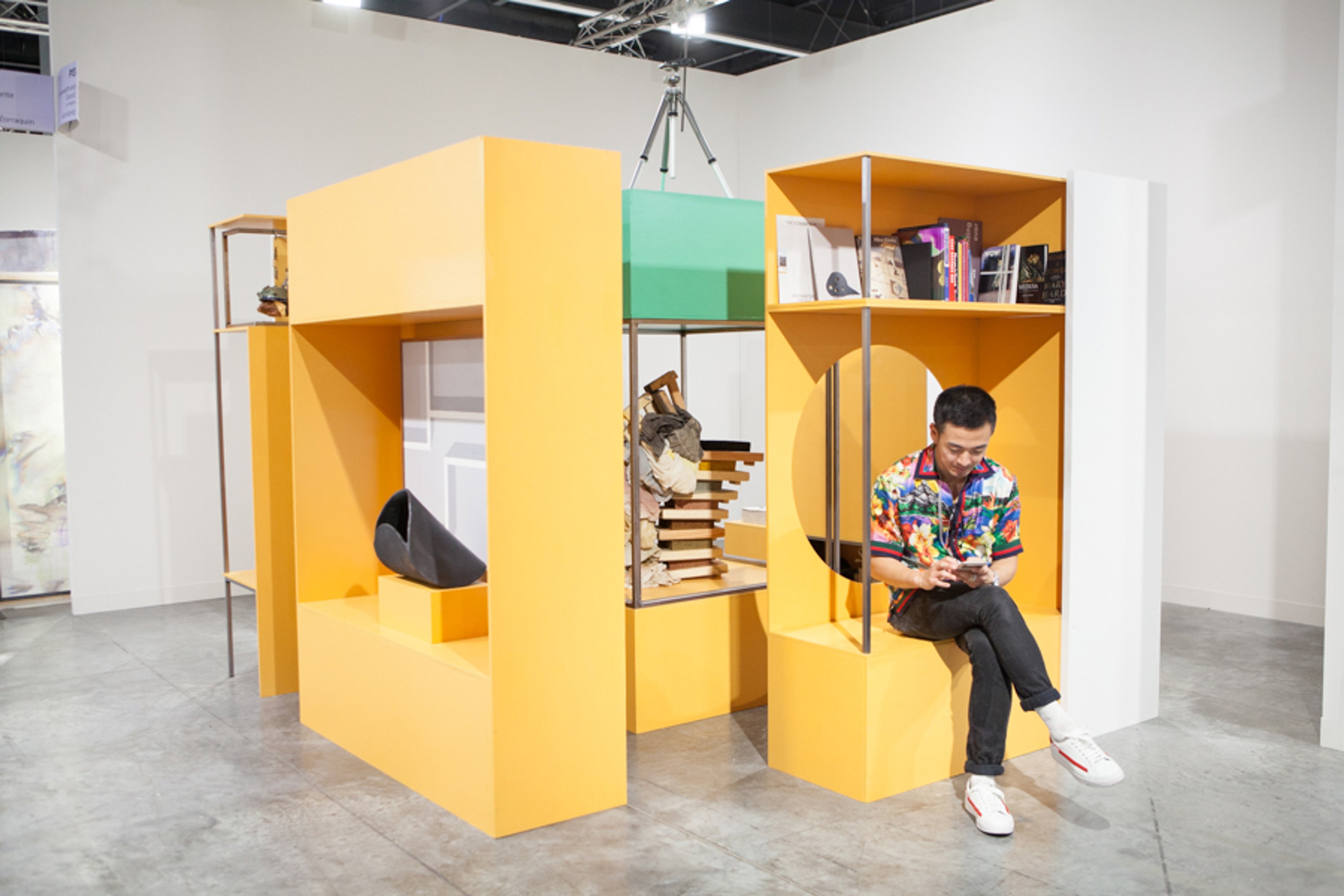 Kaiser highlights this project space in Koreatown, Los Angeles, which is led by the German artist Alice Könitz. In this work, which has separate compartments for pieces made by different artists, such as Carmen Argote, Beatriz Cortez and Katie Grinnan, Könitz “contextualises ideas around community and collaboration”, Kaiser says. “None overpowers another; it’s respectful.” Collectors can buy the work as a whole or in individual pieces. Alice Könitz, Los Angeles Museum of Art (LAMOA) Display System #7 (2018), Commonwealth and Council. Photo: © Vanessa Ruiz