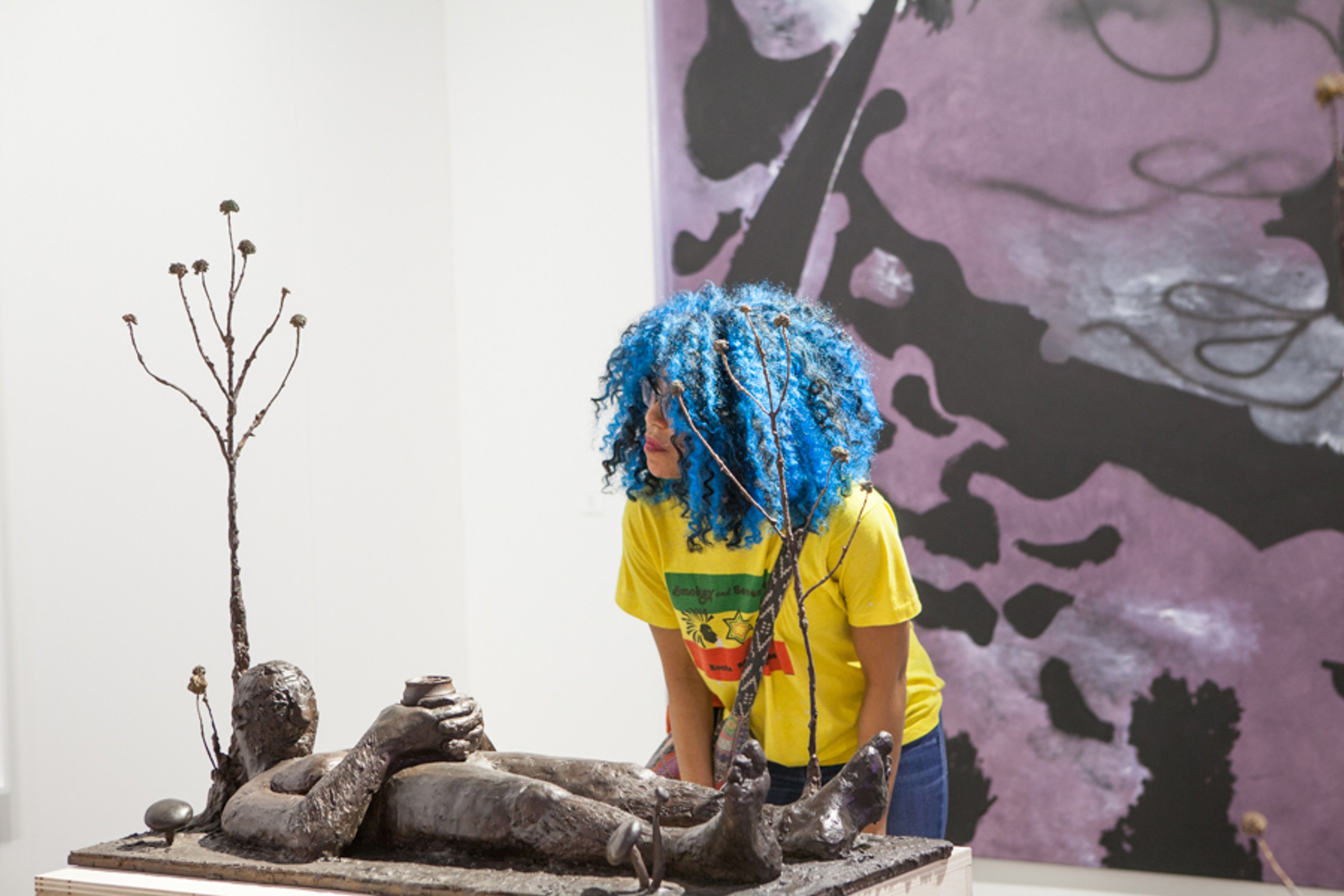 The New York-based artist made this bronze maquette for one of the life-sized sculptures in her work Sketch for a Fountain, which featured in the 2017 edition of Skulptur Projekte Münster. “When Münster opened, the sculptures were packed with kids climbing and sitting on them,” Kaiser says, adding that the artist “is better known as a painter but is also a great sculptor who creates ambiguous, dramatic pieces”. Nicole Eisenman, Maquette: Sketch for a Fountain (Laying Down Guy) (2018) Anton Kern Gallery. Photo: © Vanessa Ruiz