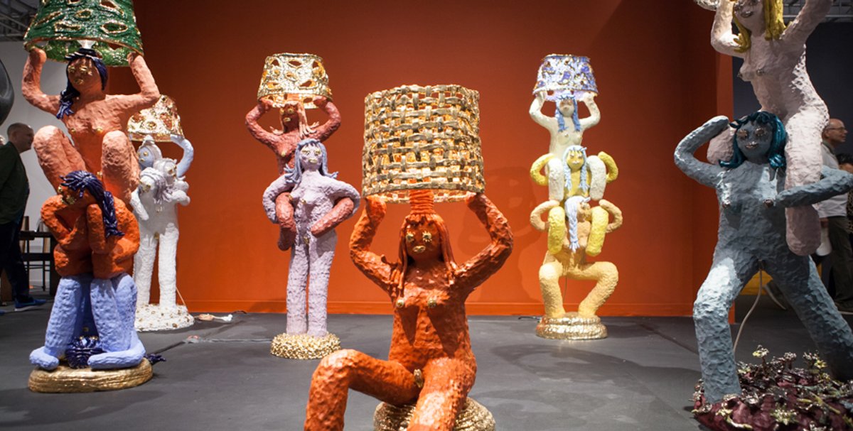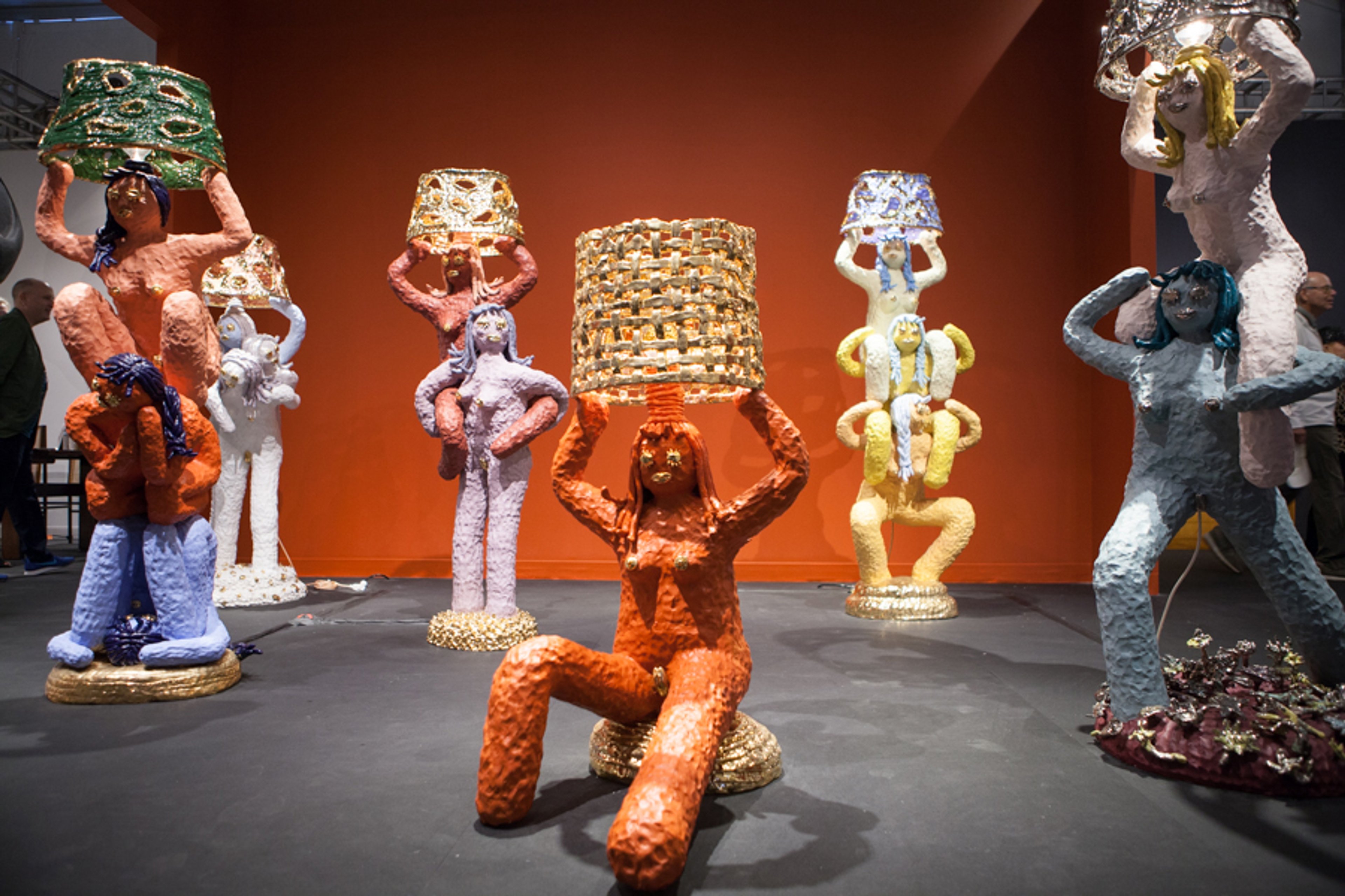 The “girls” on R & Company’s stand are having a lot of fun. The piles of female forms that make up Katie Stout’s lamps are confident and provocative, with switches masquerading as nipples and anuses, and electric cords trailing from their vaginas. “They are clearly grown women, but Stout purposefully calls them ‘girls’ to comment on how society disempowers and fetishises women,” says a spokeswoman for the New York-based gallery. All the lamps sold on the fair’s opening day. Katie Stout Girl Lamps (2018) R & Company; $45,000-$55,000. Photo: © Vanessa Ruiz