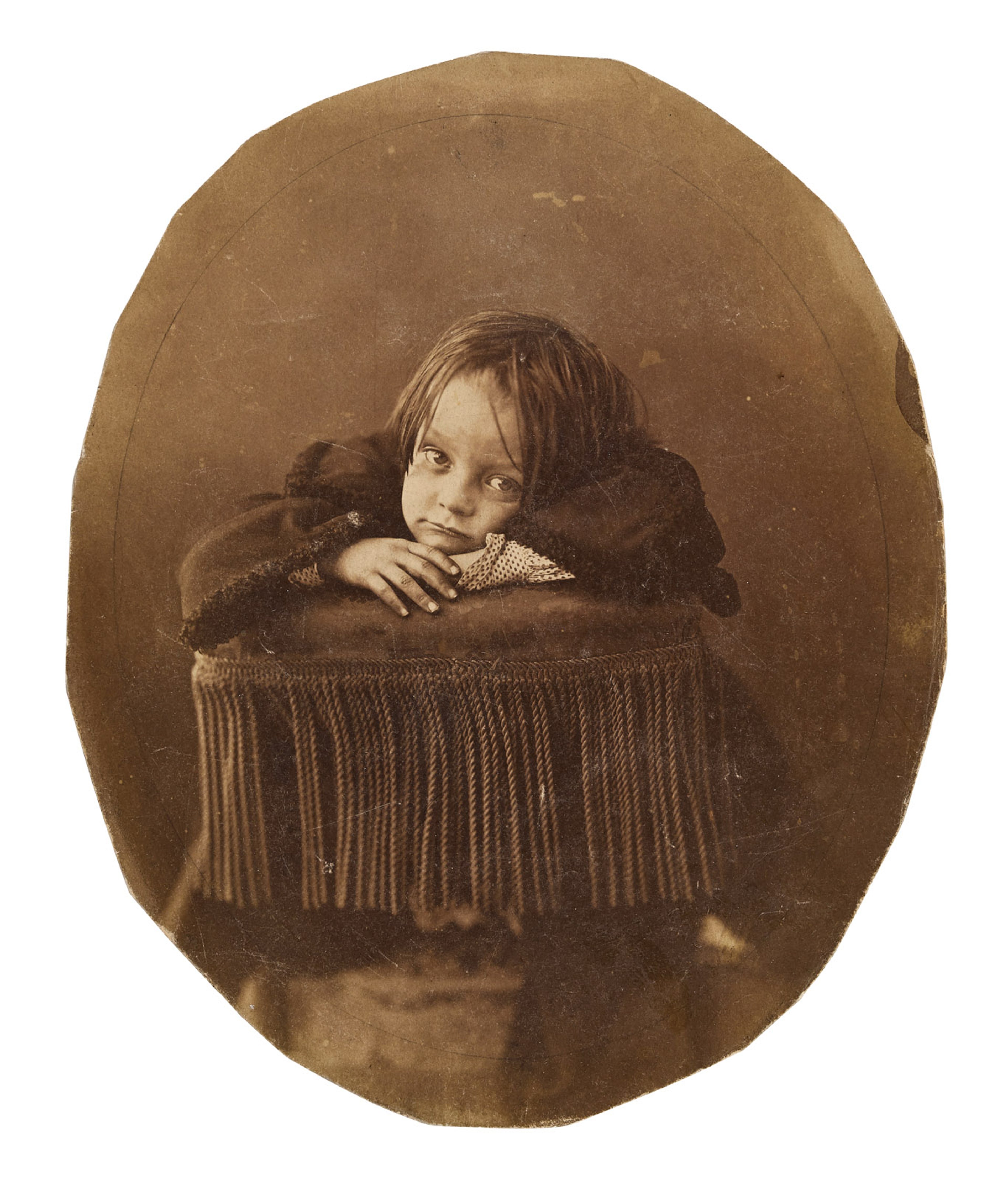 Félix Gaspard Tournachon moonlighted as a journalist, caricaturist and balloonist under the pseudonym Nadar before he and his brother, Adrien, launched a Paris portrait studio in the early 1850s under the same name. Yet, as brothers, they were often reluctant to share and quarrels quickly ensued; by 1853 they dissolved the business partnership, but not without a bitter fight over who got to keep the Nadar name. Félix won and quickly propelled the studio to prominence, photographing some of the biggest names of the age such as Sarah Bernhardt, Claude Debussy and Eugène Delacroix. He also captured his son, Paul, in this highly unusual tondo print that has a sketch of the child’s face on the verso side. Nadar, Portrait of Paul (1858-60). Photographs, Bonhams, New York, 5 April. Estimate $50,000-$70,000. Photo courtesy of Bonhams