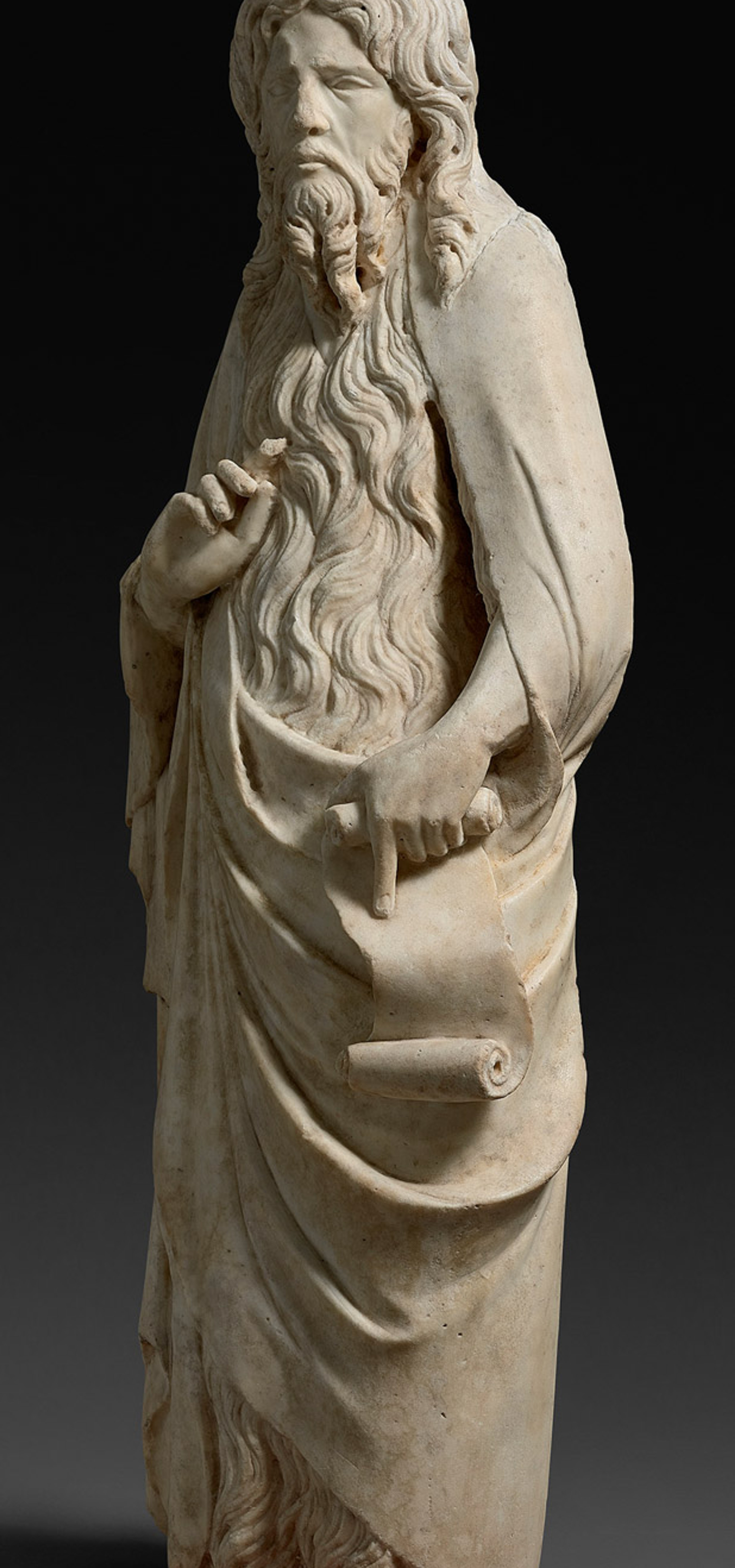 This late-Gothic marble depiction of Saint John the Baptist (around 1350-60) is, Stuart Lochhead says, a new discovery by the Tuscan sculptor Nino Pisano, the son of Andrea Pisano. In a 2005 article, the piece was described by the Italian Renaissance scholar Francesco Caglioti as a “splendid St John the Baptist” by the artist, unpublished and in a private collection outside of Italy. This sculpture was the basis for the figure of St John in the marble polyptych (late 1360s or early 1370s) by Nino’s brother Tommaso in the Basilica of San Francesco, Pisa. The back is only roughed out, suggesting it was meant to sit in a niche, and Lochhead thinks it is likely it “came from a similar polyptych in the Pisa area, the other components of which are either lost or unidentified”. Stuart Lochhead Sculpture has priced this piece at $2.5m. Nino Pisano’s St John the Baptist (around 1350-60). For sale with Stuart Lochhead Sculpture