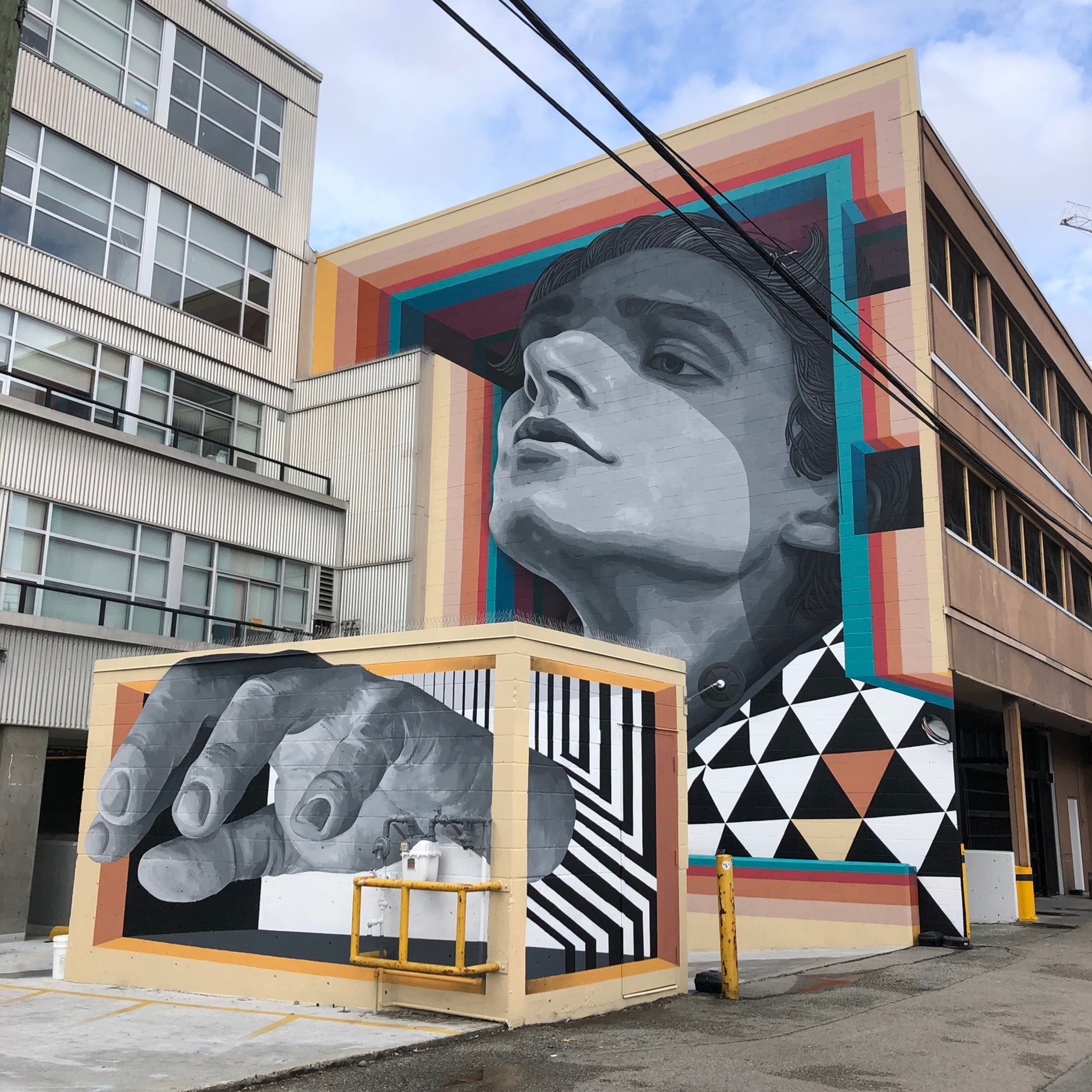 Vancouver-based artist Olivia DiLiberto’s mural Cosmic Breeze occupies the massive front wall of Titmouse Animation Studios. The work references nature and the cosmos—typical of the artist’s counterculture and psychedelic work, which aims to infuse new life into idioms of the 1960s-70s. Gabriel Martins