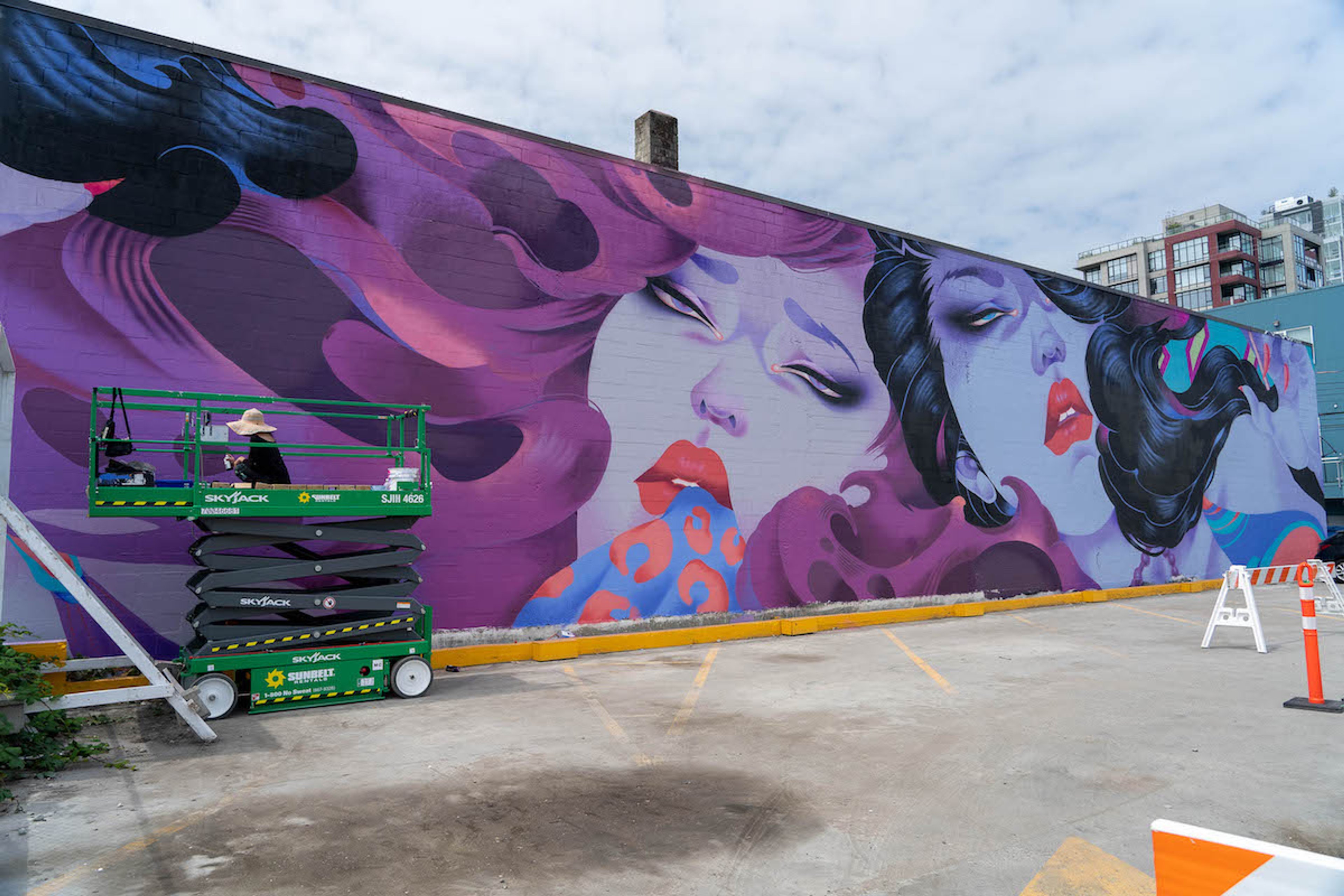 At the corner of 5th Avenue and Manitoba, the Canadian artist Kathy Ager is working on a mural called Homecoming. The work reflects the cultural influences of her travels between Vancouver, Lisbon and Amsterdam. Ager's painterly style—influenced in part by Dutch Masters, fashion and pop culture—provides intrigue on a quiet commercial street. Gabriel Martins