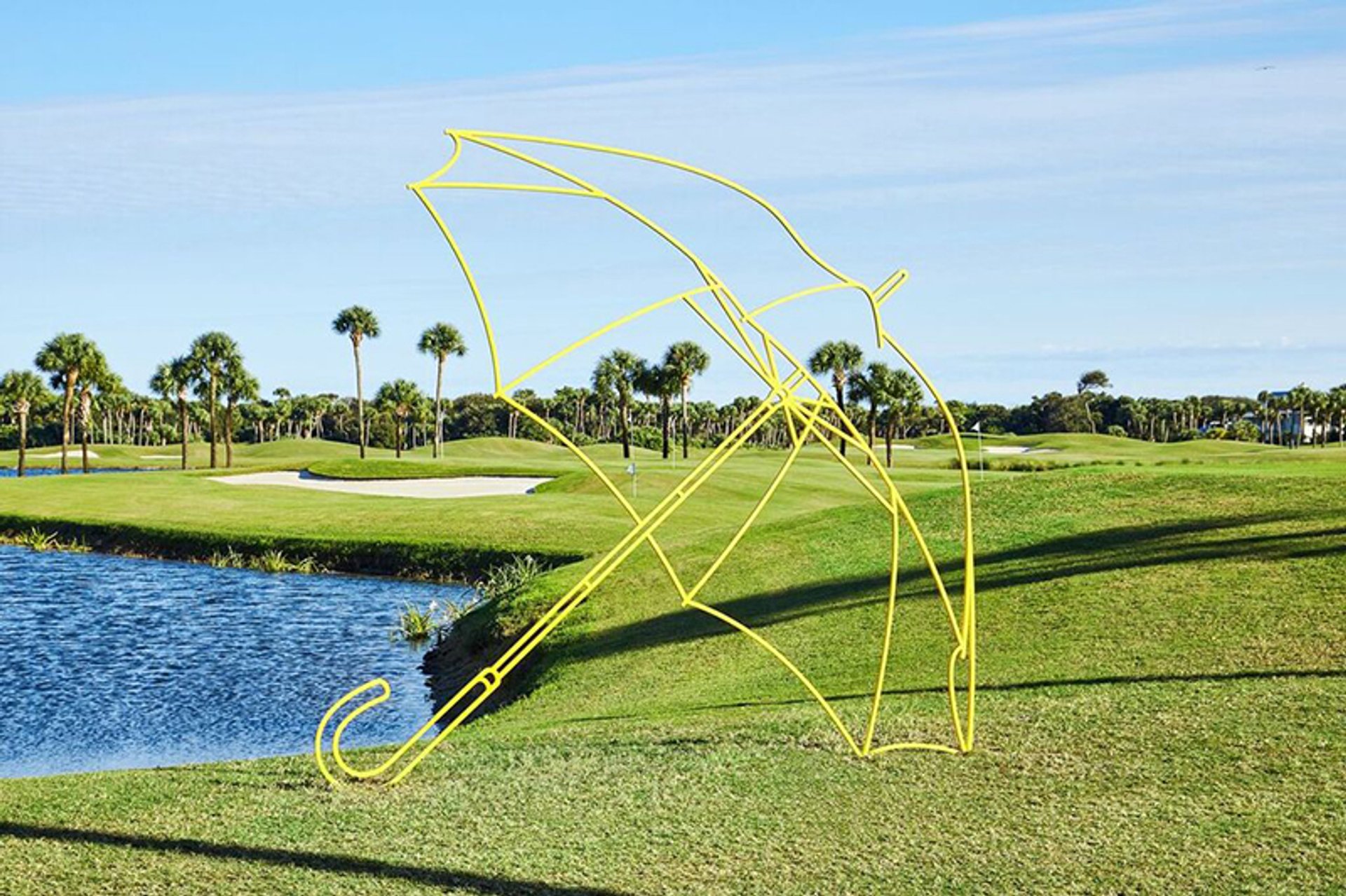 Michael Craig-Martin, Umbrella (yellow) (2011), installed at on the grounds of Windsor, Florida Photo: Aric Attas; © Michael Craig-Martin; courtesy of the artist and Gagosian