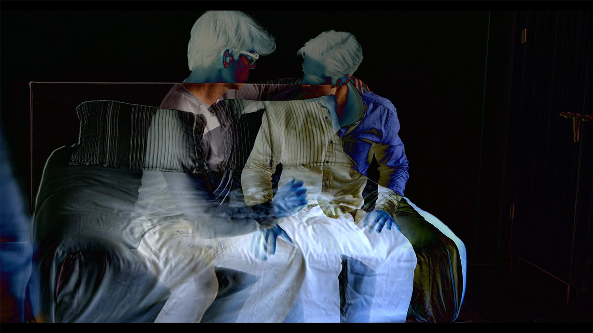 Interruptus (2018), his latest, is a five-minute bedroom drama about two men preparing to have sex—until one of the men’s wives walks in. As a quartet playing Beethoven gathers steam, the conflict is overlaid with earlier images as if they were sustained chords in a musical performance. The images also remain as afterthoughts or echoes that keep the action in the viewer’s memory. Thrill (2018), meanwhile, is a whirl of rotating colours as a couple dances.