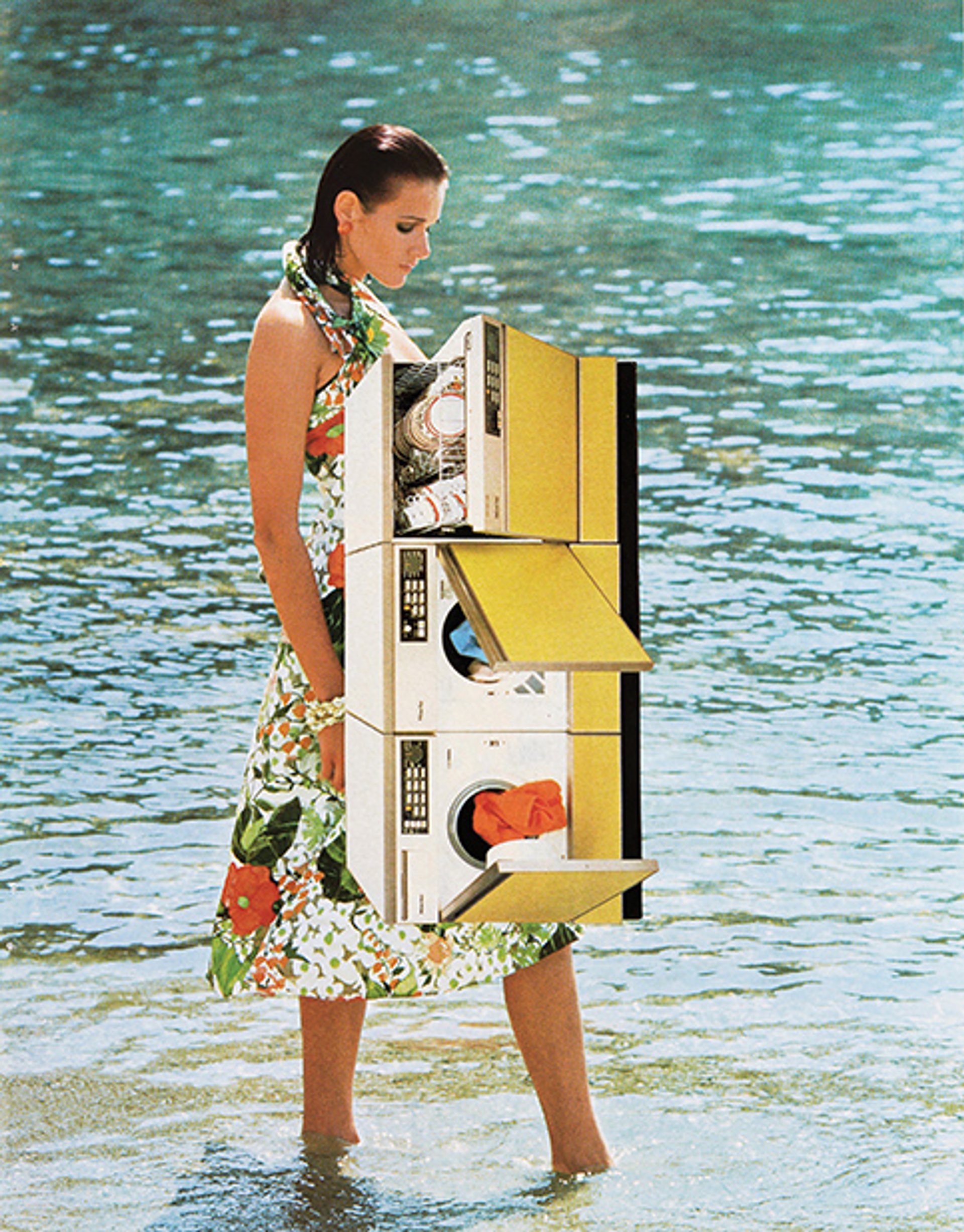 In 2009 Linder remembers visiting the Barbara Hepworth sculpture garden in St Ives where she “fell in love with Hepworth’s work after a lifetime’s indifference”. Several years later, Hepworth’s sculptures inspired The Ultimate Form, a new work made in collaboration with Northern Ballet, and this series of photomontages uses fashion imagery and household appliances dating from 1970-75. “Barbara Hepworth remarked that she could speak through marble and I’m fascinated by the idea of the female artist as ventriloquist. This series of works ventriloquises fashion photography in the last five years of Hepworth’s life, when the female figure was often depicted wandering freely in the landscape while the accompanying adverts tethered her very firmly in the home.”