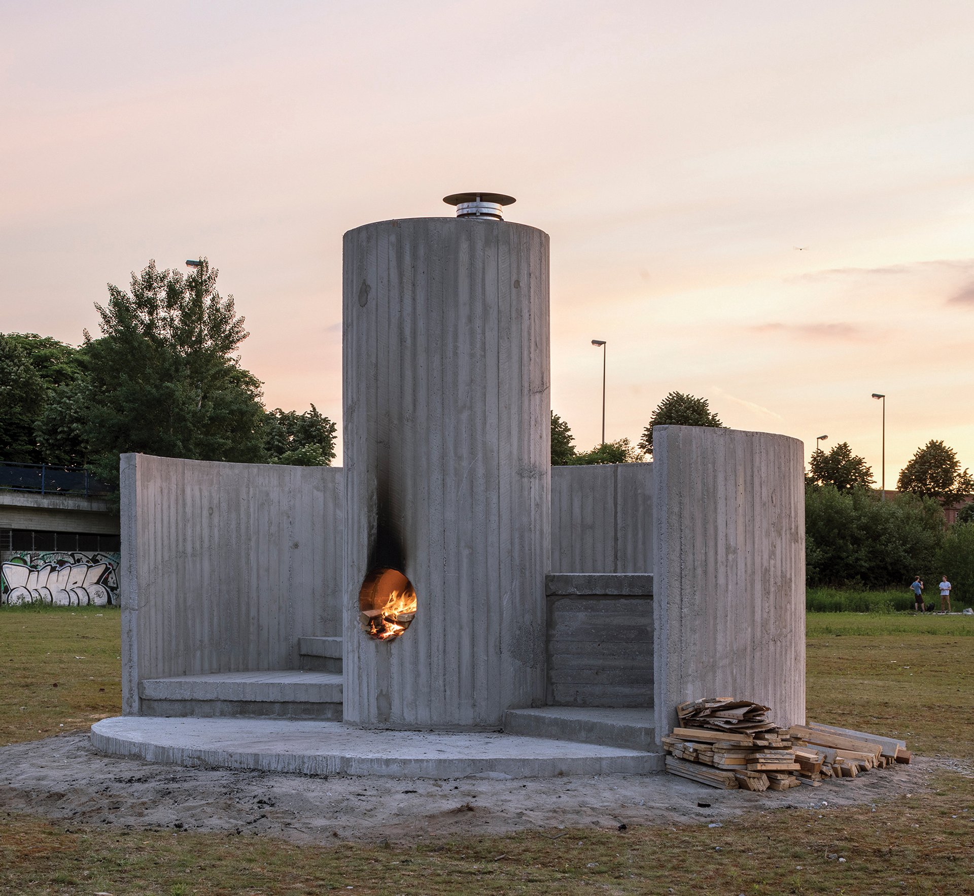 The confrontation that happens in public art is so unpredictable. You think you’ve imagined everything that could happen, and there’s always a surprise. I designed the structure to be impervious to fire. It has a powerful rocket stove and an internal combustion system that burns really hot, with almost no smoke. That part is built out of refractory cement, which can withstand enormous heat. But, of course, people started a fire outside the stove, just on the floor in front of it. The chimney itself is made of normal concrete, and that area burned and started to crumble, so it had to be repaired.