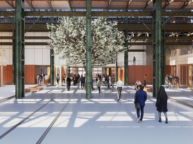 Sustainability features at heritage-listed former railway factory will include heating system that stores summer warmth for use in the winter months