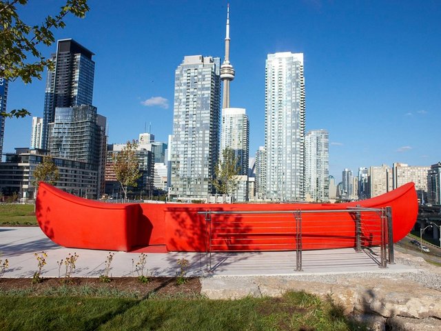 The public art piece in the shape of a canoe, by Douglas Coupland, was a tribute to the famed Group of Seven painter Tom Thomson