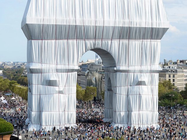 Material from Christo's wrapped Arc de Triomphe to be recycled for Paris Olympics in 2024