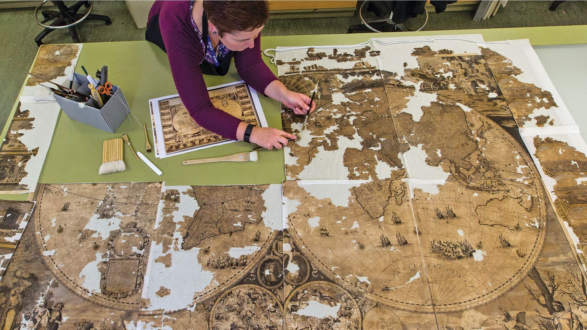 The 17th-century map, which was discovered scrunched up in a ball, is on show at the National Library of Scotland