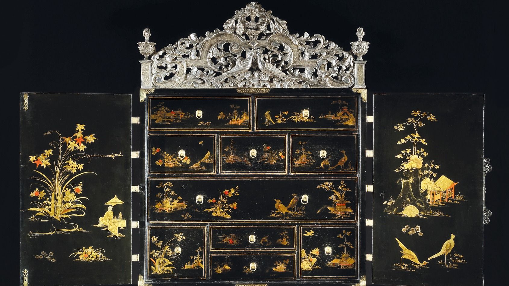 Original silver revealed after experts painstakingly stripped layers of gold paint from the cresting and stand of William and Mary piece