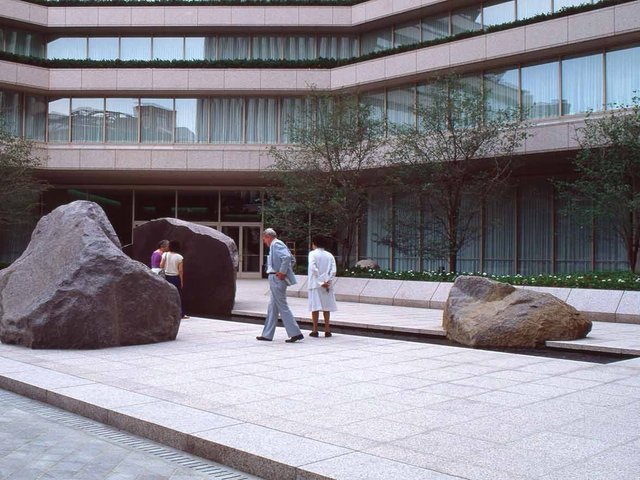 Arrangement of boulders around reflecting pool on National Geographic Society campus is cited as a landscape art masterpiece