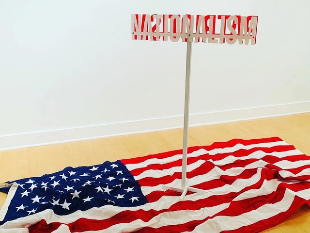 The work has received pushback from Republican student groups who denounce the artist's decision to place the US flag on the floor