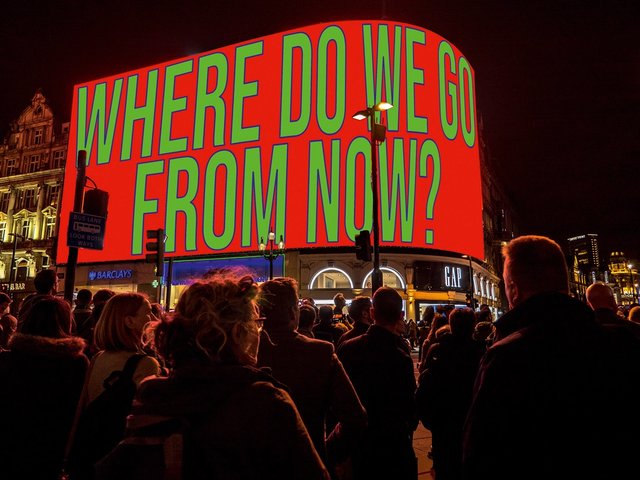 Shortage of materials and transport problems mean Daniel Arsham's public work has only just arrived in London