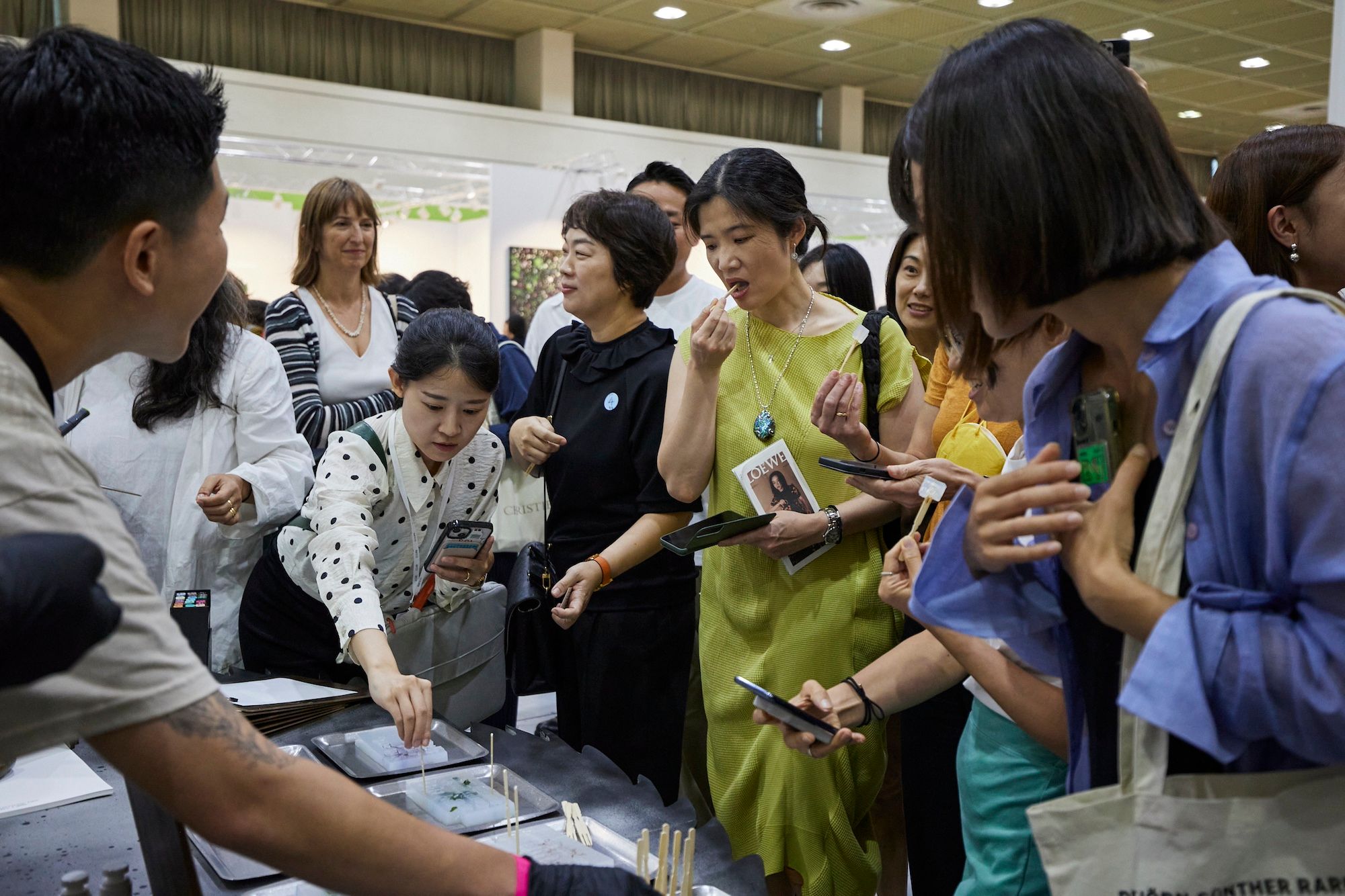 The Korean artist collective ikkibawiKrrr offered fair-goers a salty sampling of the sea water from Jeju Island