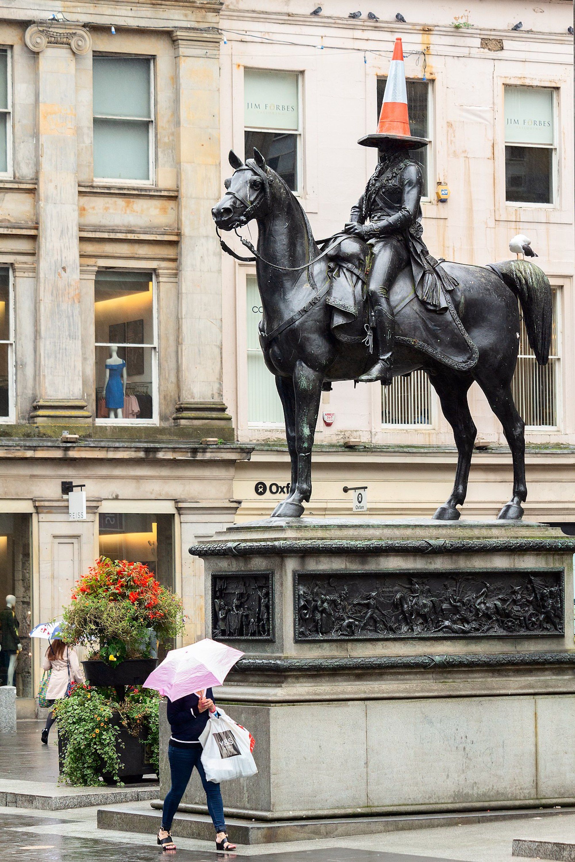 With his first official solo show in 14 years, Banksy left his tag on the Scottish city, home to the mysterious street artist's favourite work of art in the UK