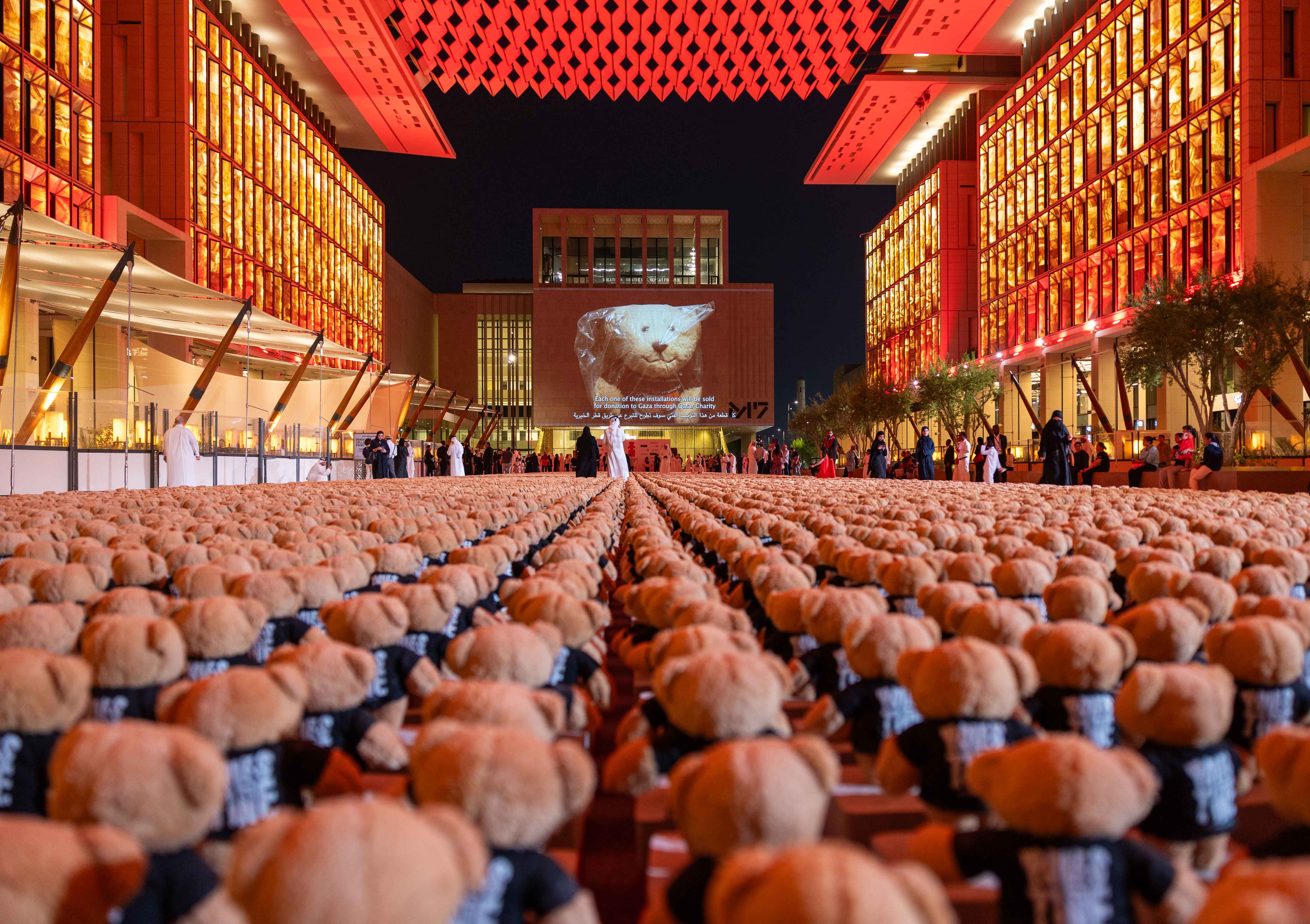 The work, by the Lebanese artist Bachir Mohamad, was inspired by footage of a child in Gaza crying while holding a cuddly toy