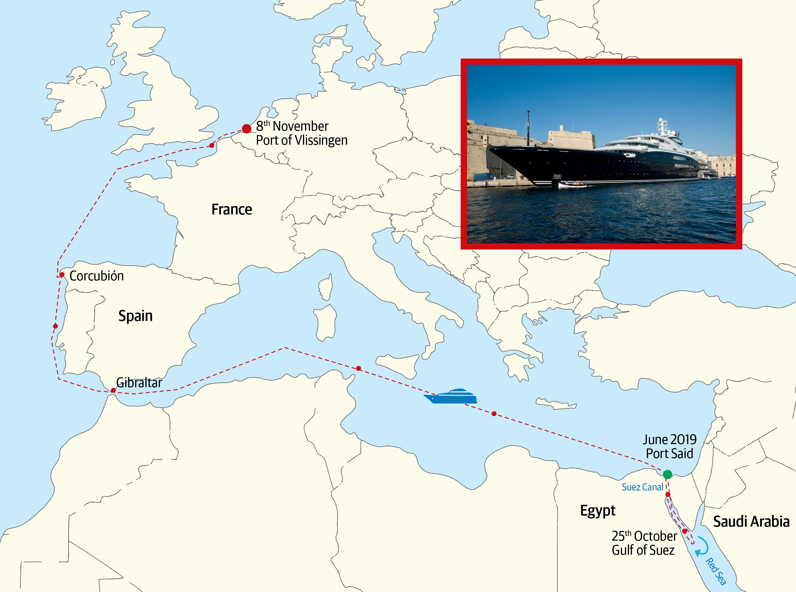 The Crown Prince of Saudi Arabia’s luxury vessel has unexpectedly circumnavigated Europe and docked in the Netherlands