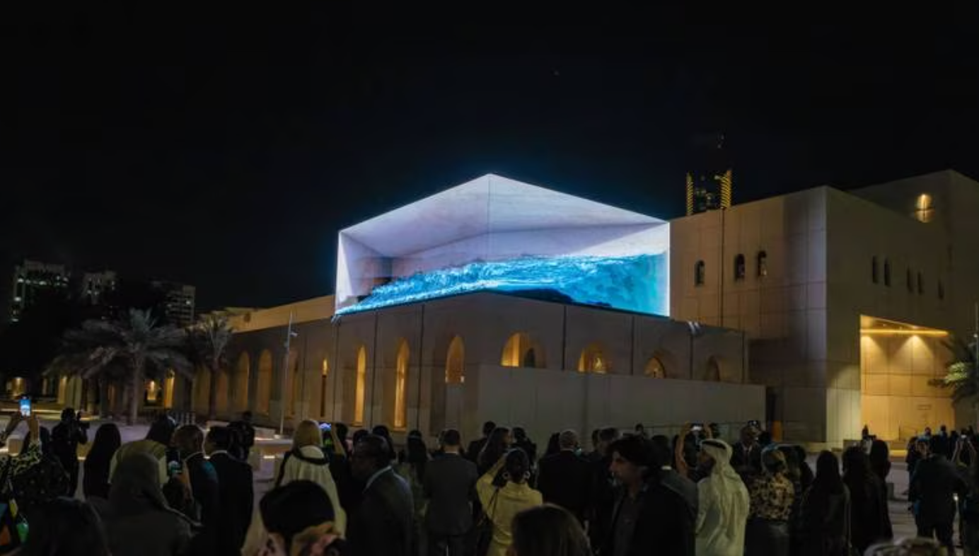 The first "direct commission" unveiled by Public Art Abu Dhabi is a multimedia crashing wave display by the Seoul-based collective d’strict