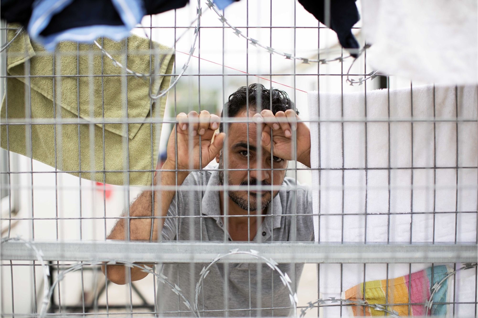 Edward Jonkler’s photographs, on view in London, show men held in limbo at centres in Europe and the Middle East