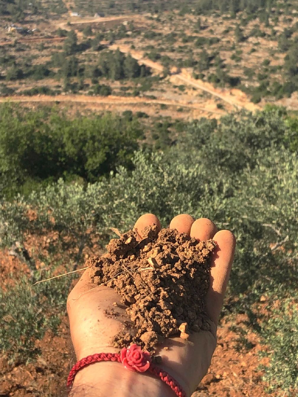 The work draws attention to the desertification of agricultural land in Palestinian territory