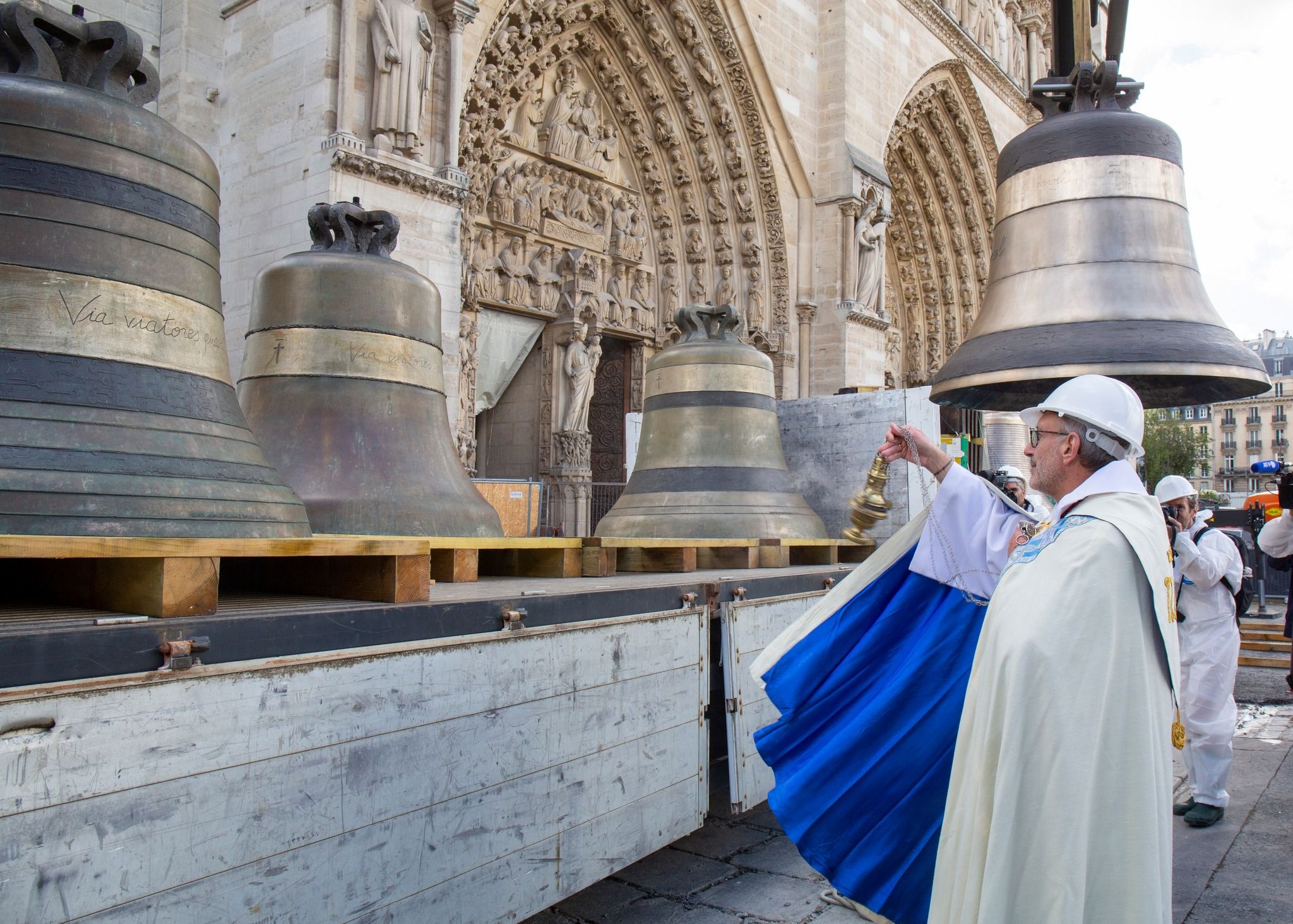 The northern belfry’s mighty bells—the oldest having survived the French Revolution—have been restored in Normandy and reinstalled in the bell chamber, from where they will once again ring out