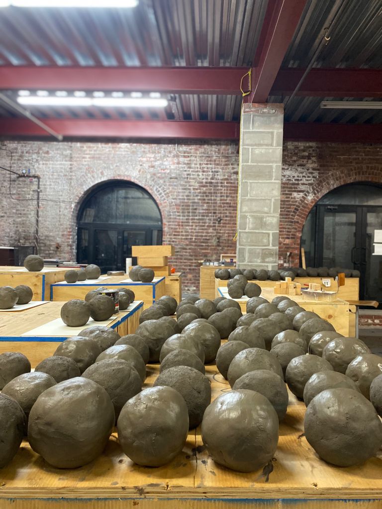 The work invites members of the public to bring home and plant one of 439 small clay spheres, each with seeds inside