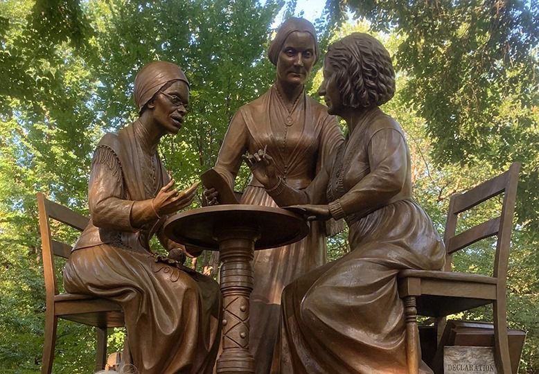 Hillary Clinton attended the unveiling of the statue depicting Susan B. Anthony, Elizabeth Cady Stanton and Sojourner Truth