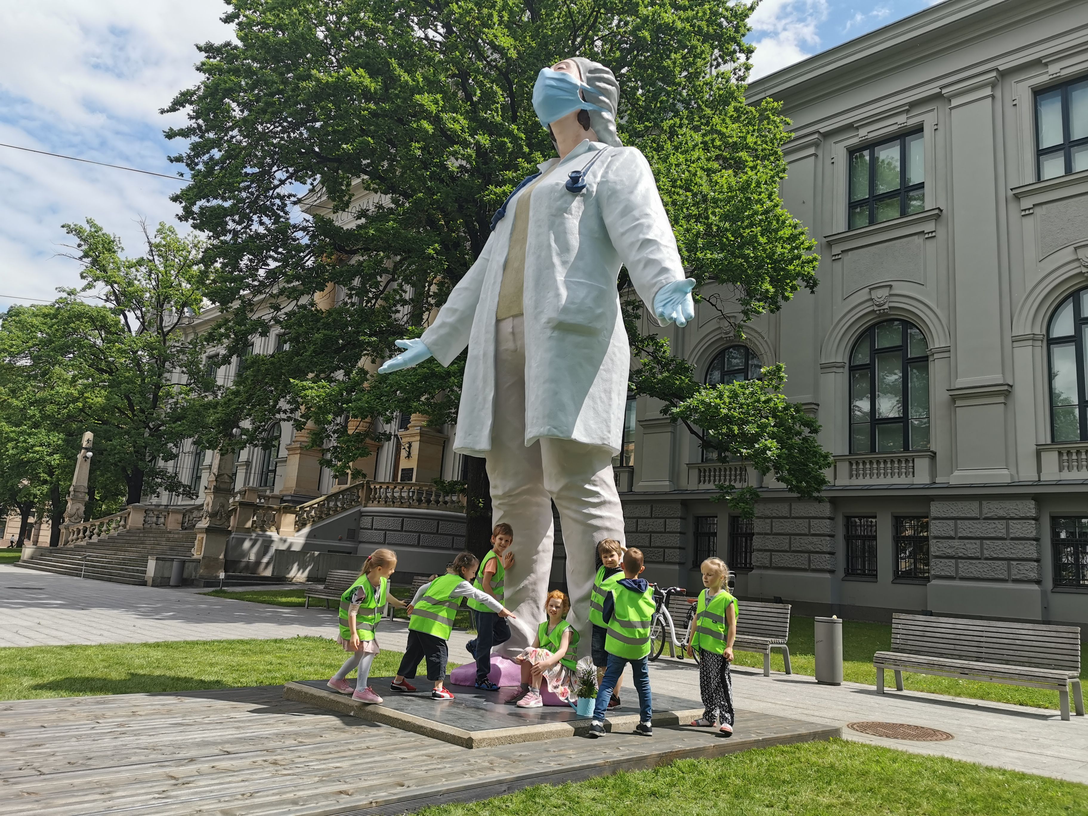 Sculpture by Latvian artist Aigars Bikse is in a prominent spot in front of the National Museum of Art